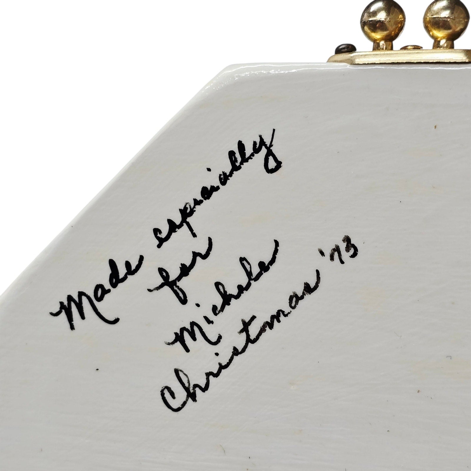 Condition Notes: Features age-appropriate discoloration on the white finish, a personalized handwritten Christmas message inside the lid, and is signed by the artist.