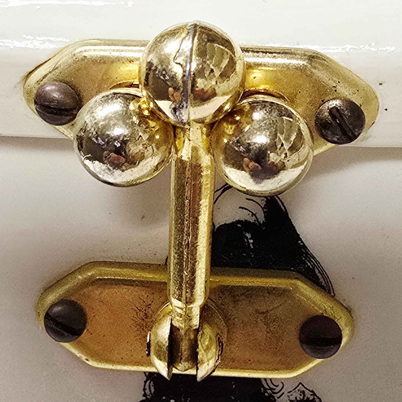 Material: Decoupage over wood with brass hardware and metal swing handles.