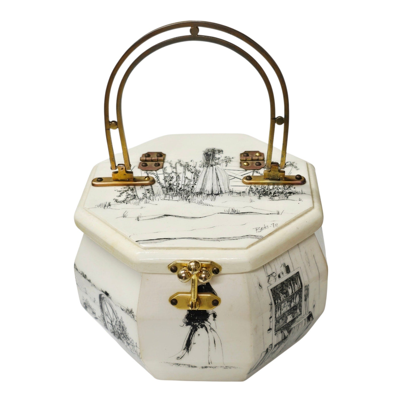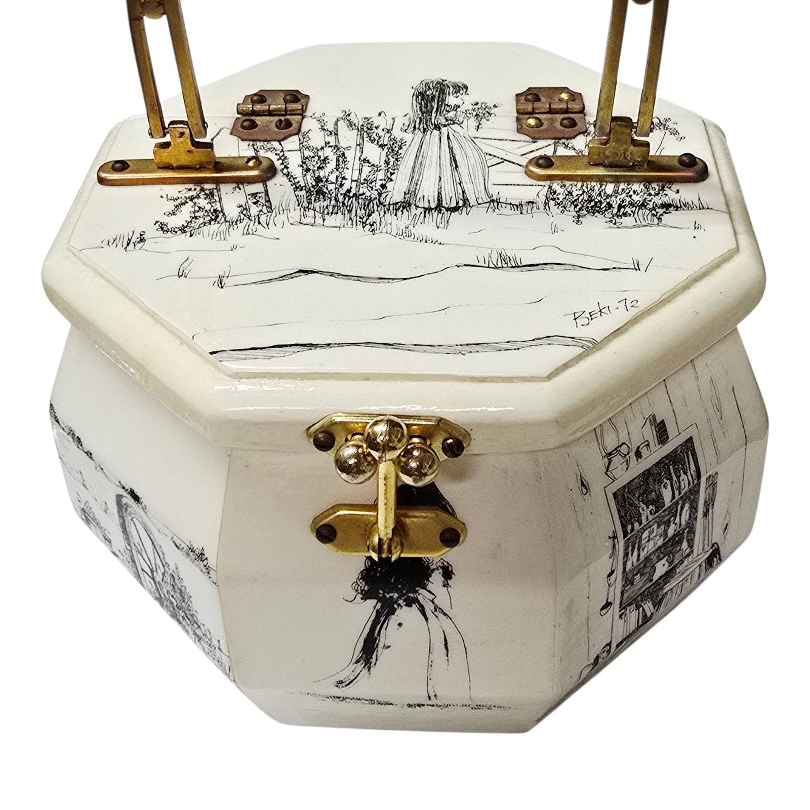 Vintage 1972 Beki Signed Wooden Box Purse Decoupage Hand Painted Octagon Rare
