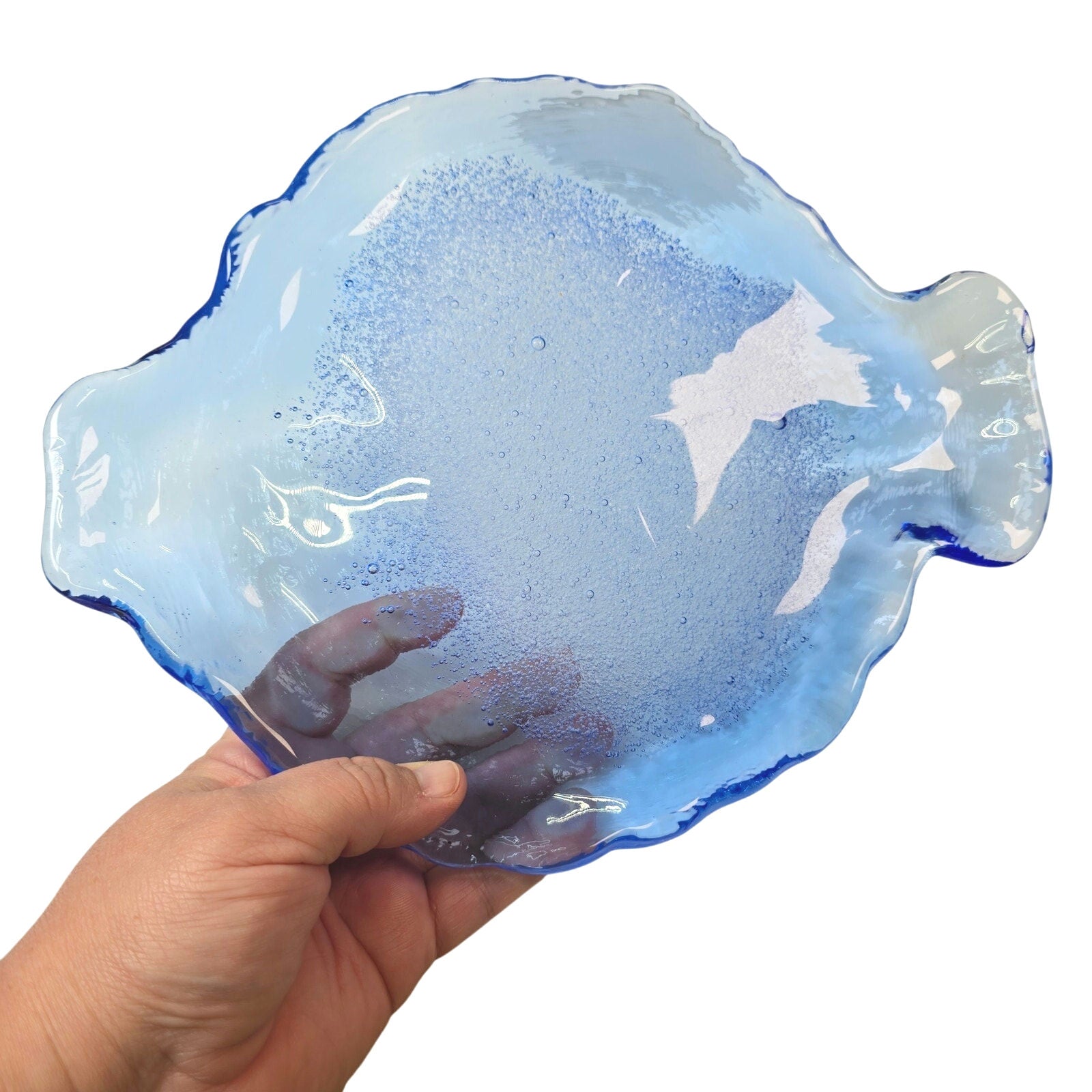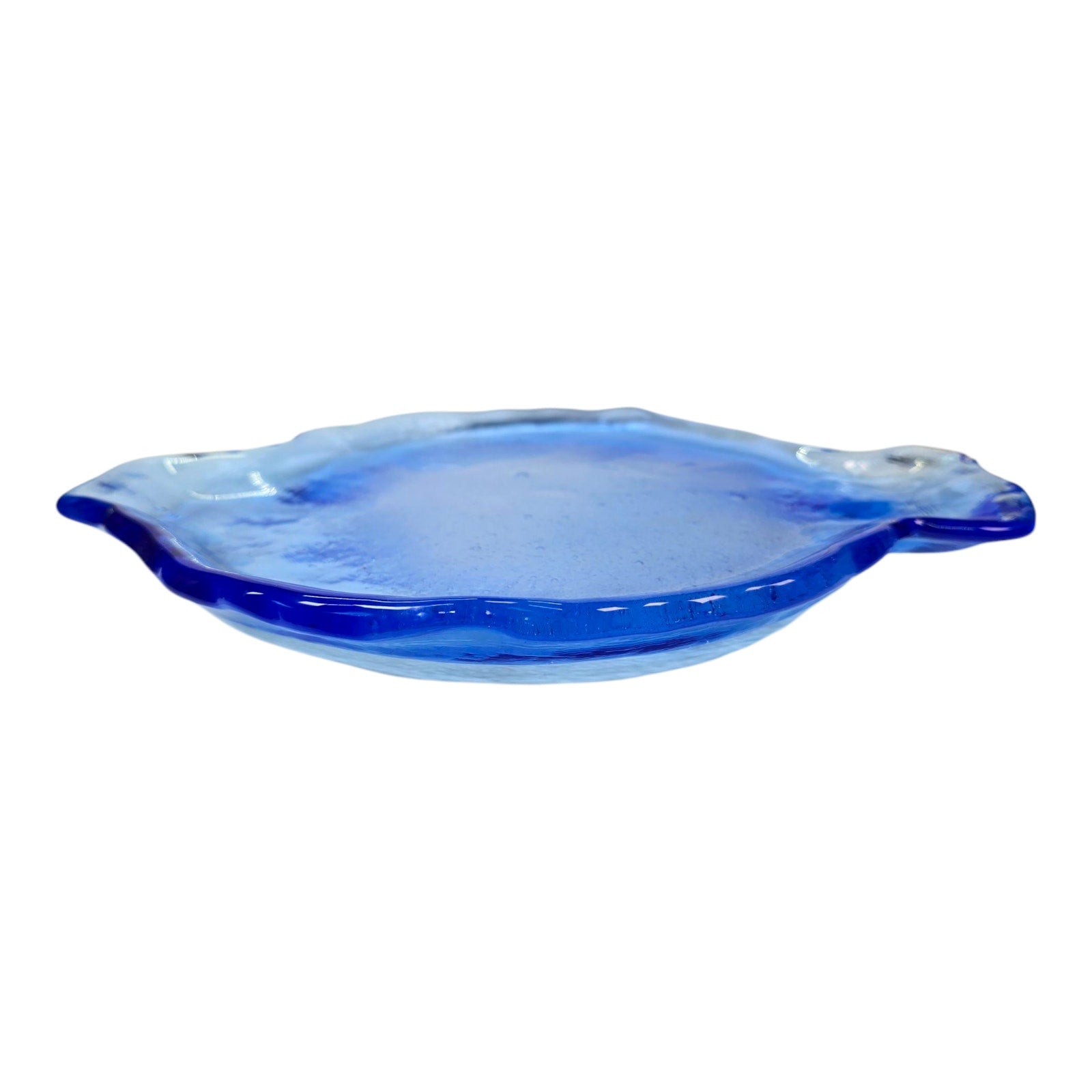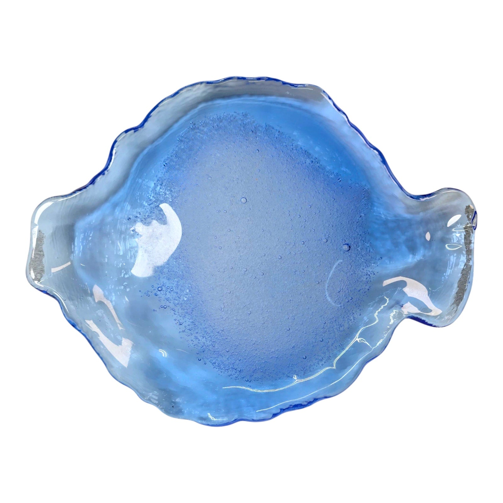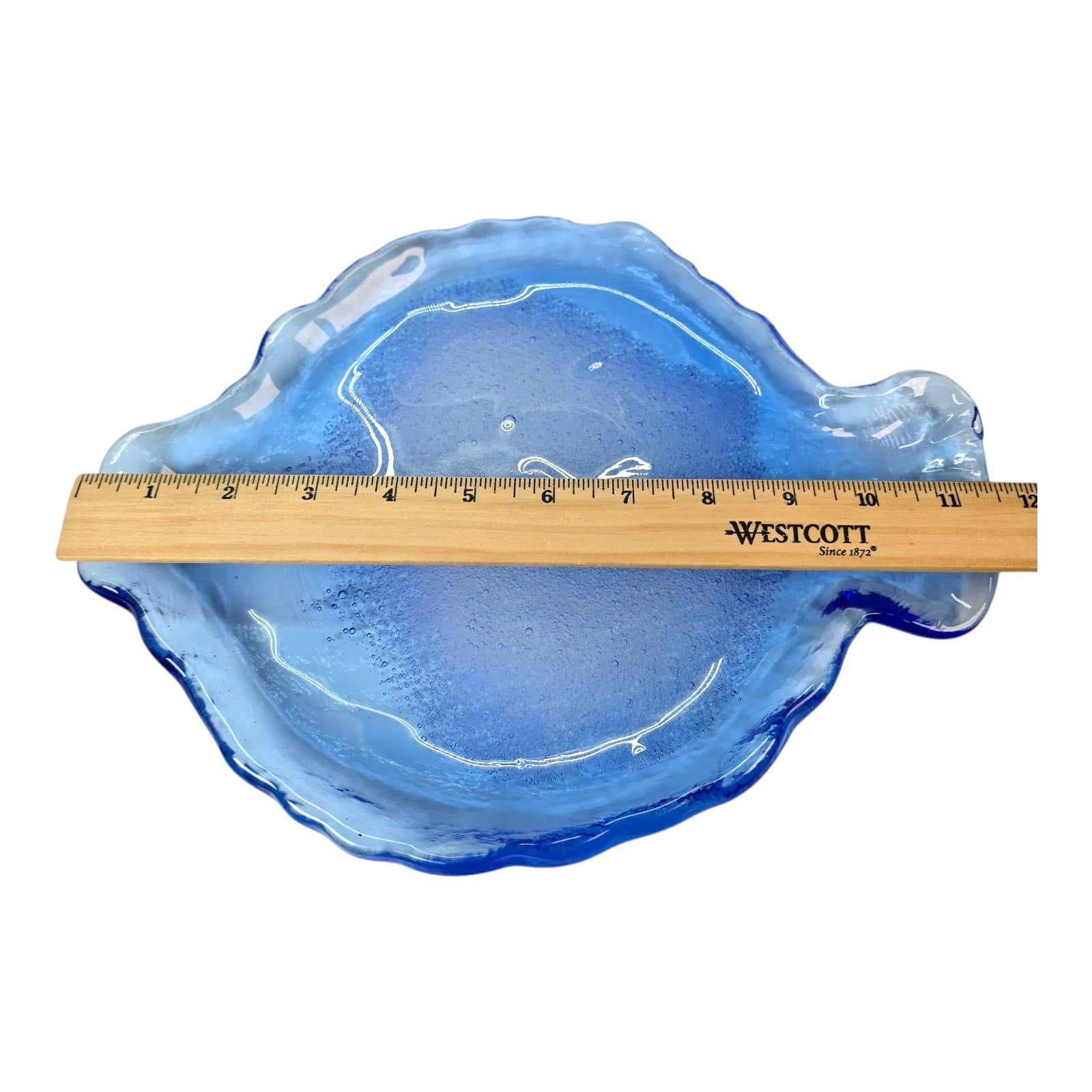Vintage AMICI Fish Dish Made in Italy Bubble Art Glass Thick Recycled Glass Blue