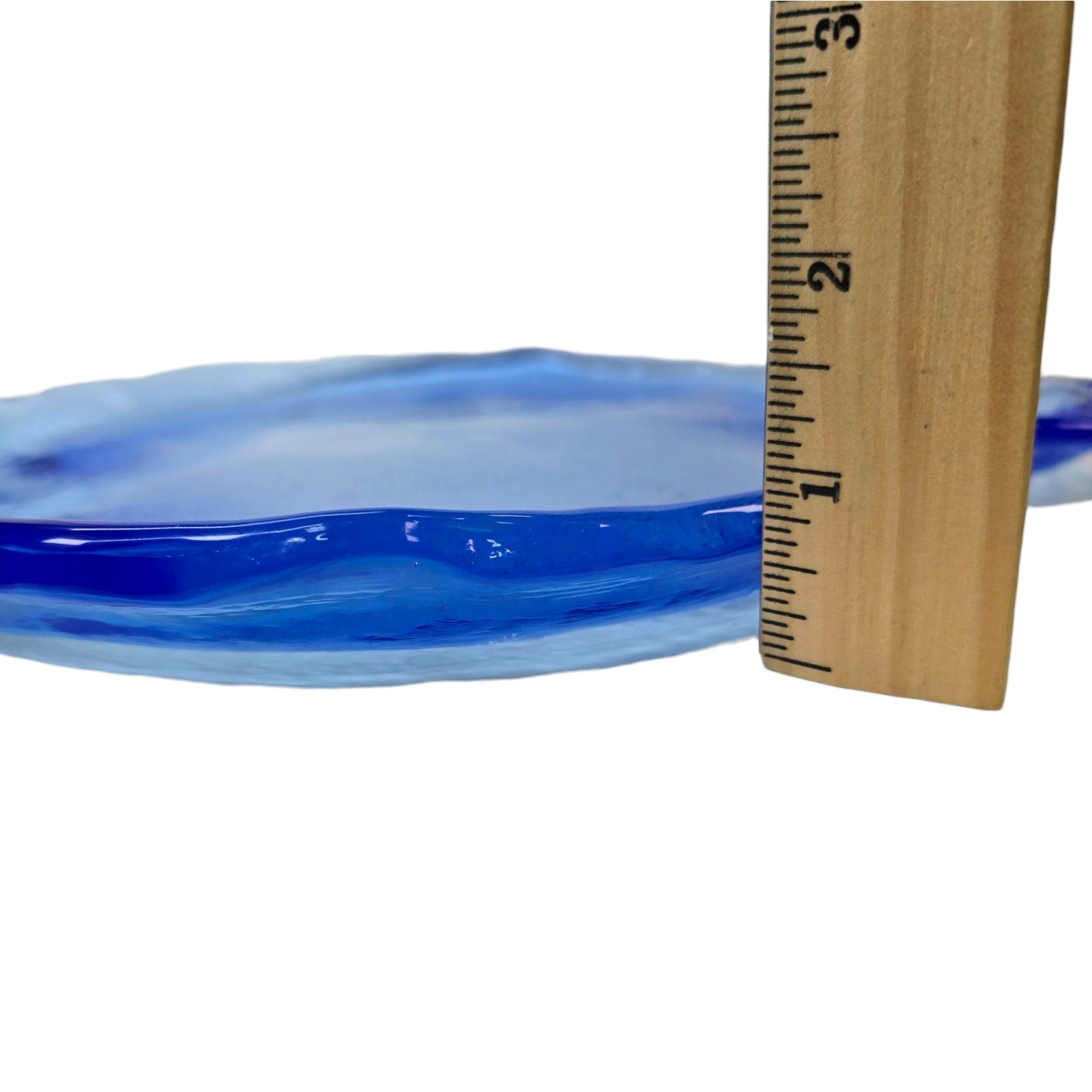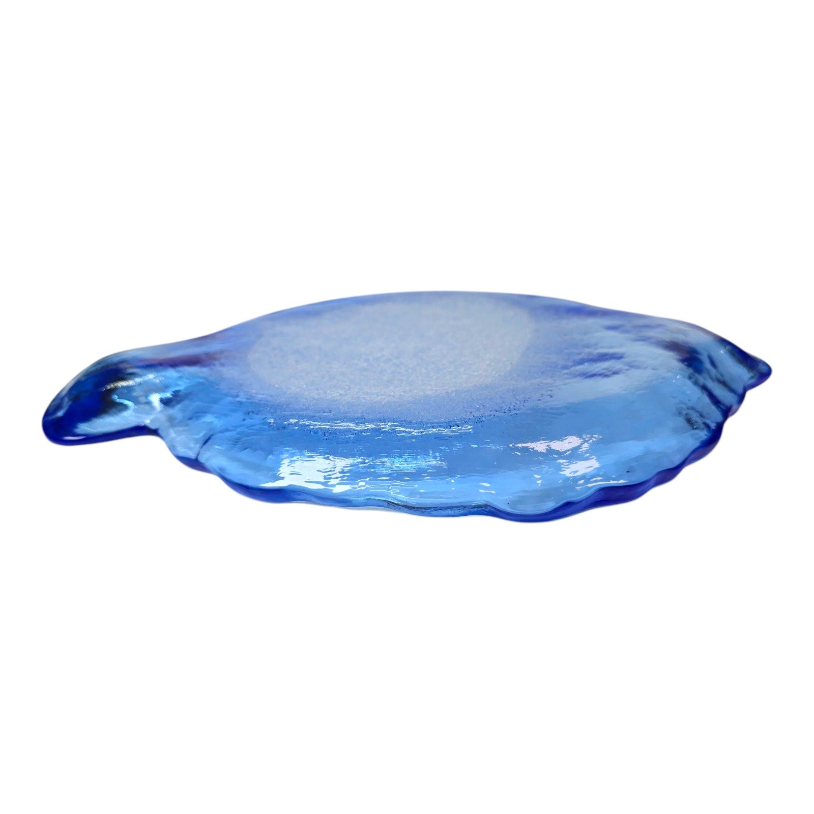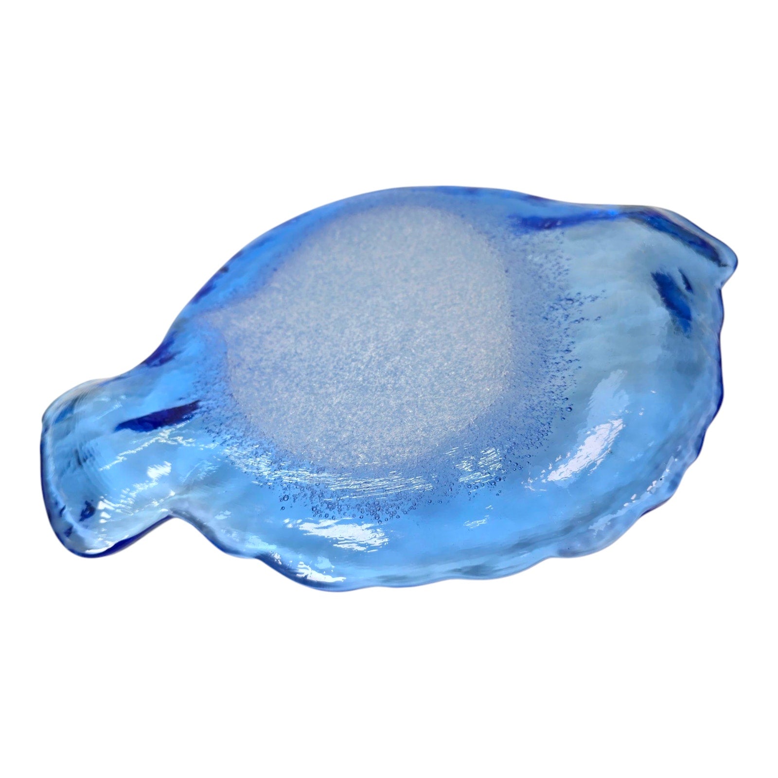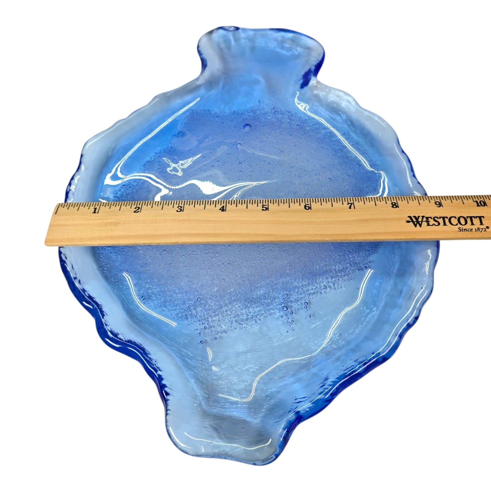 Vintage AMICI Fish Dish Made in Italy Bubble Art Glass Thick Recycled Glass Blue