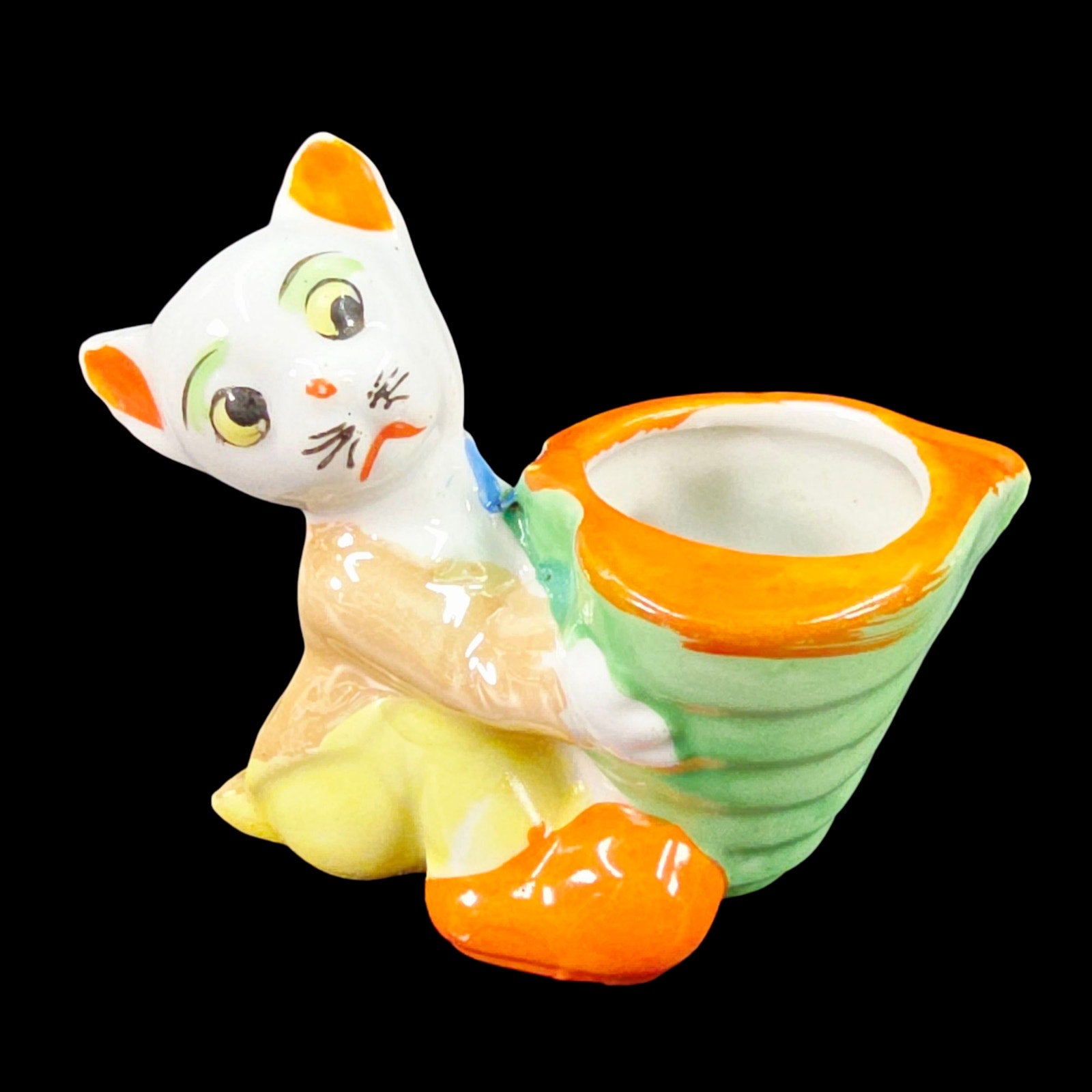 VIntage Anthropomorphic Cat Figurine, Planter / Pin Cushion Made in Japan 1950s Lusterware
