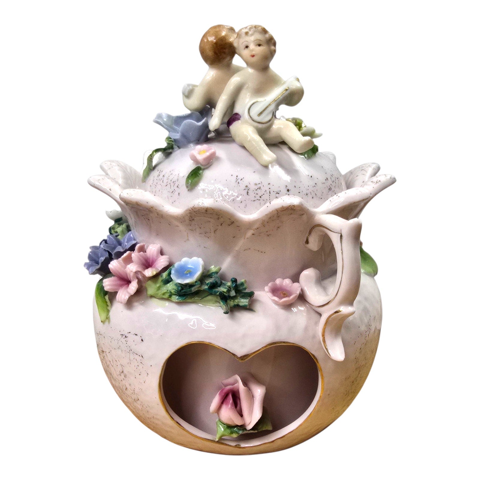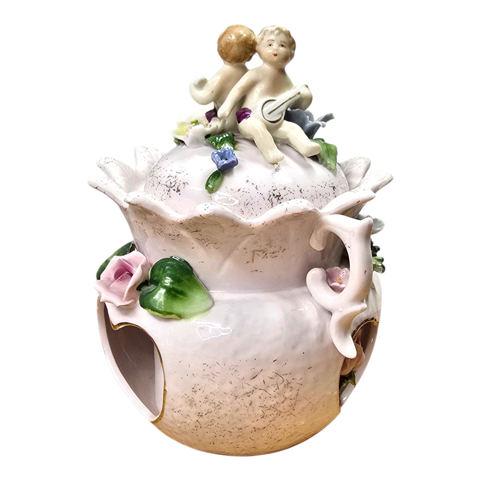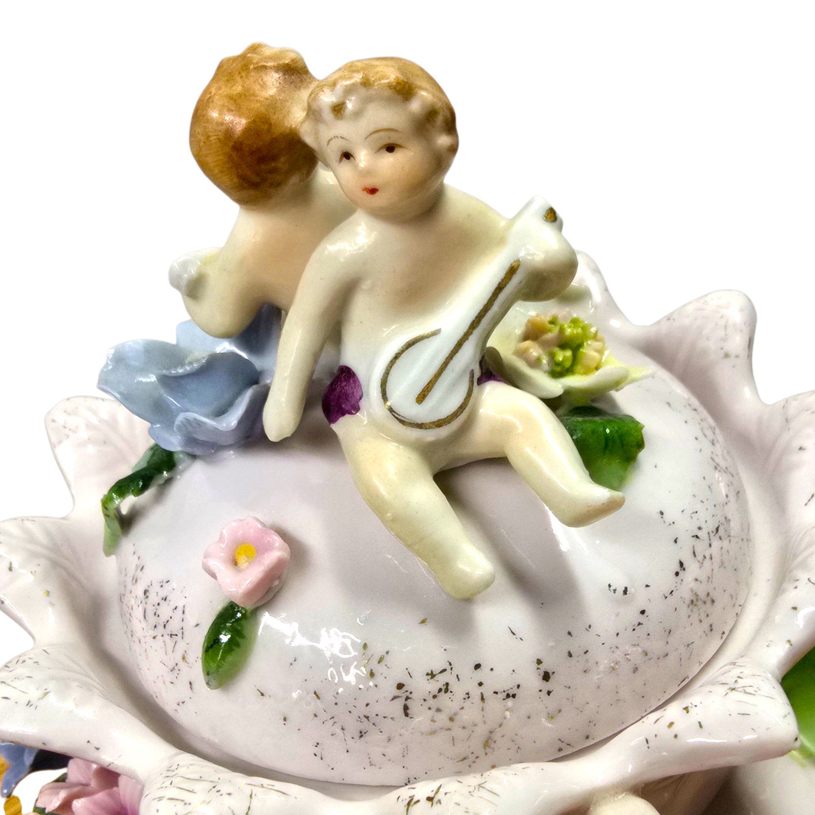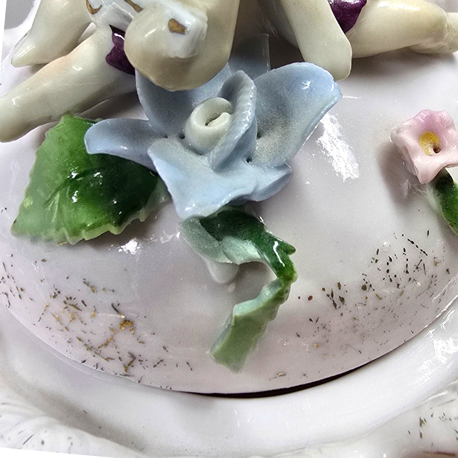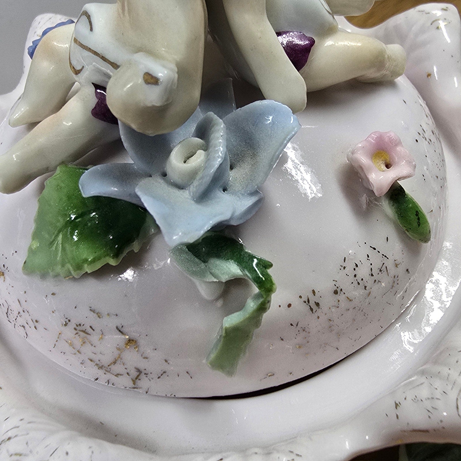 Vintage Capodimonte Style Porcelain Jar Cherub Lid Floral Applied Flowers Pink