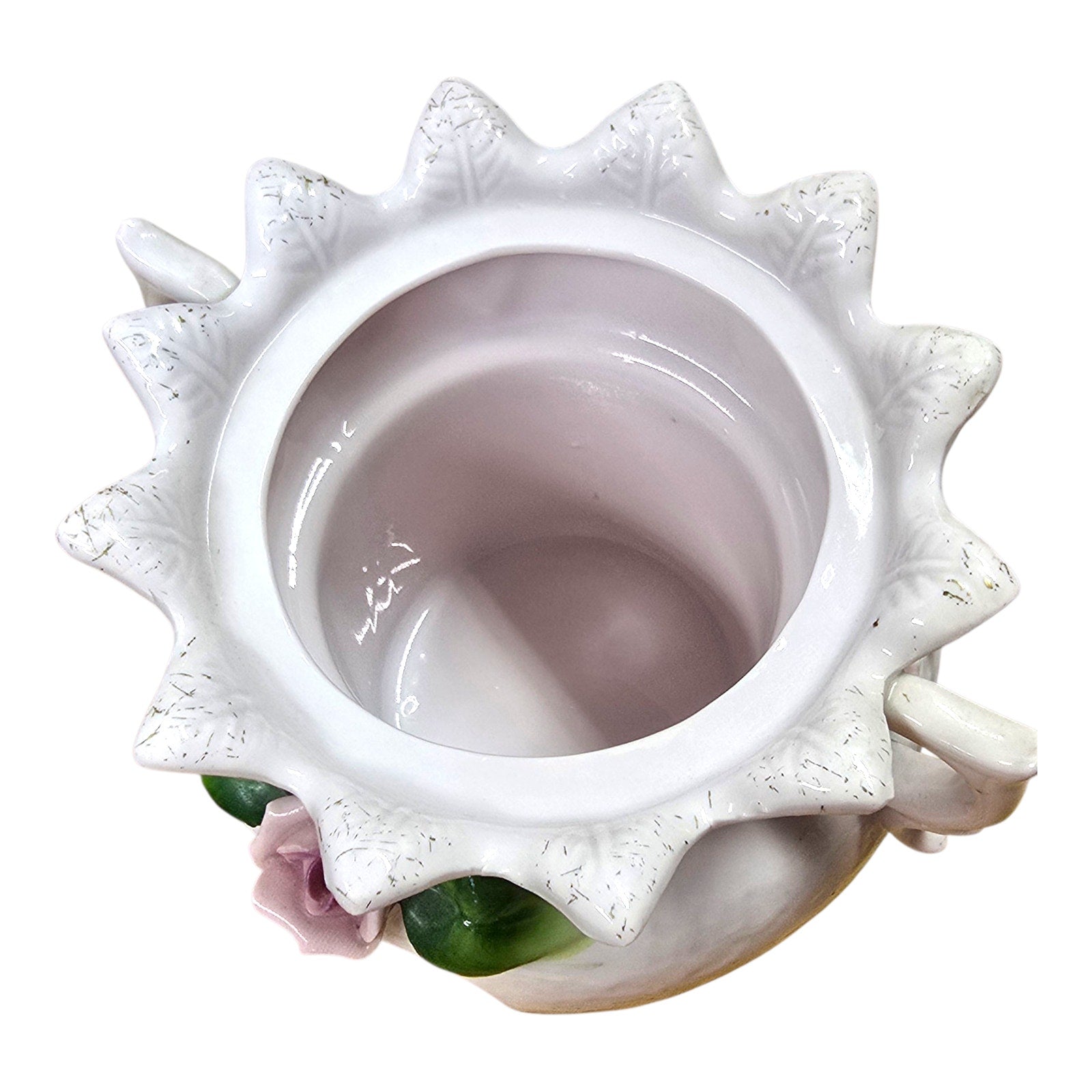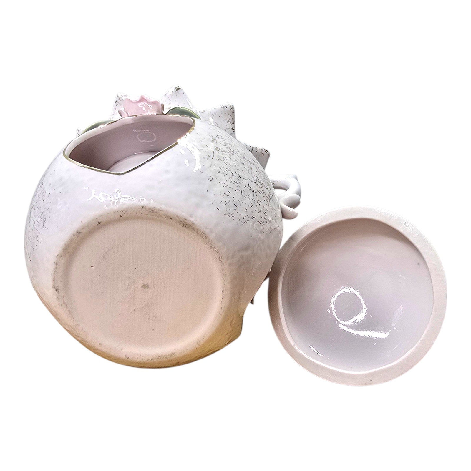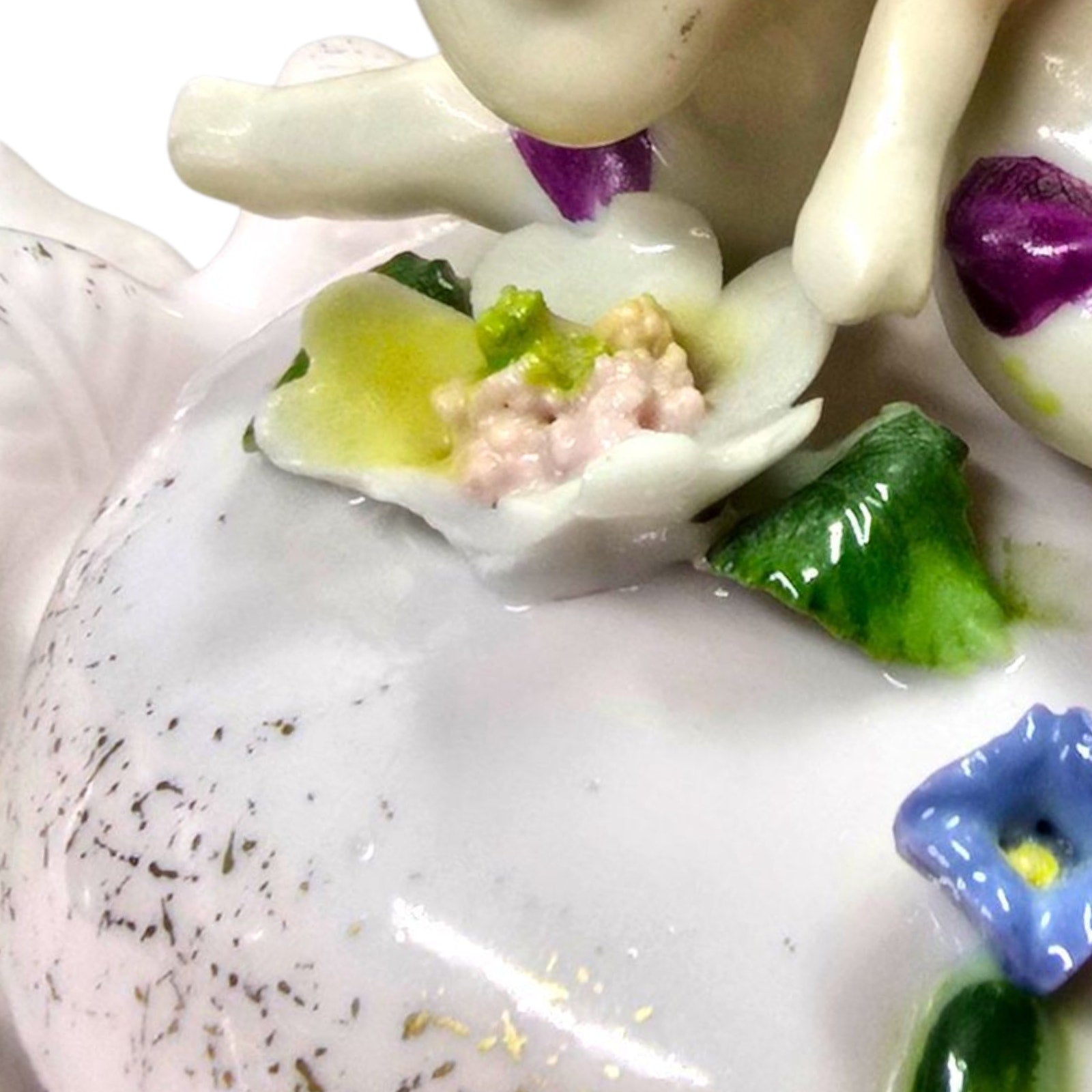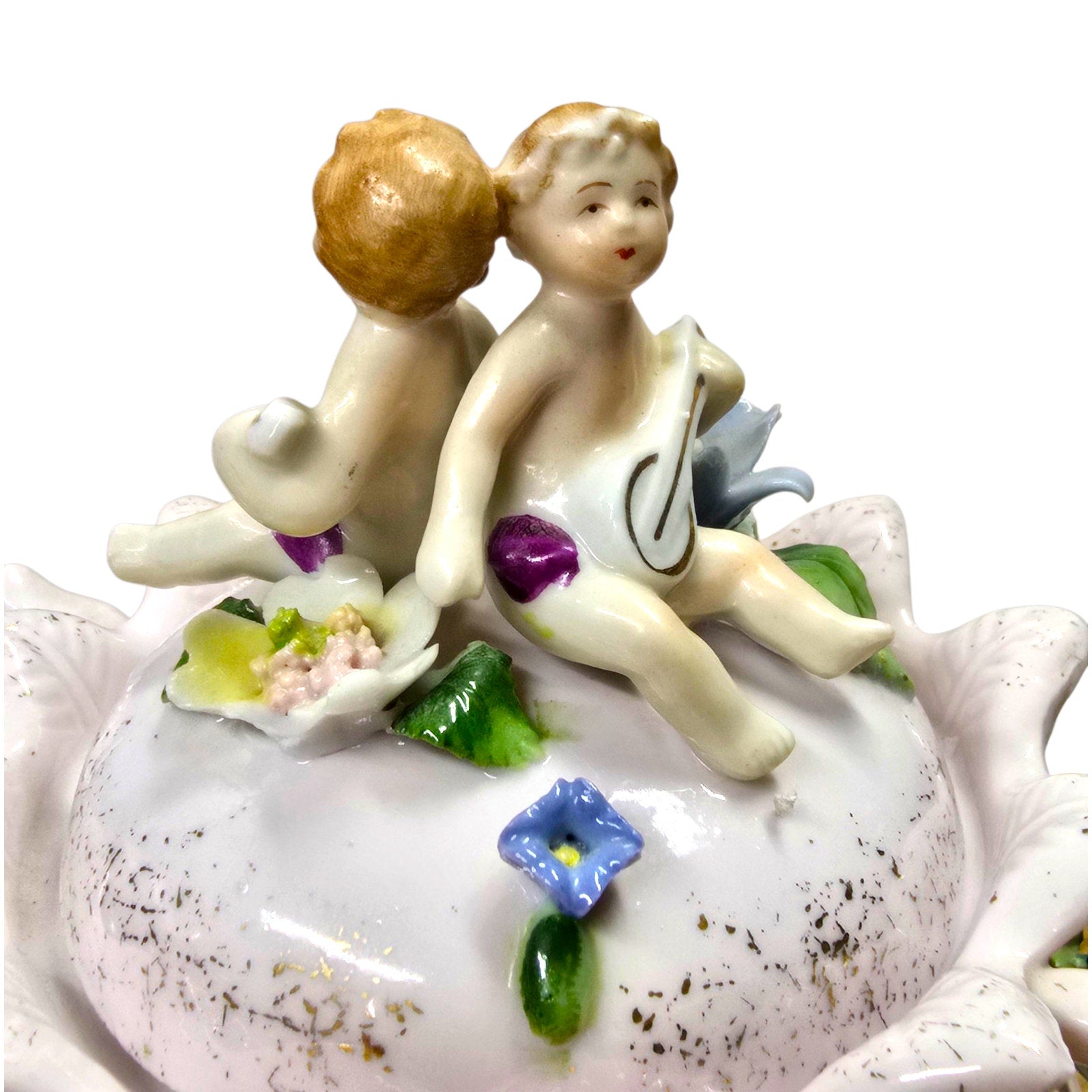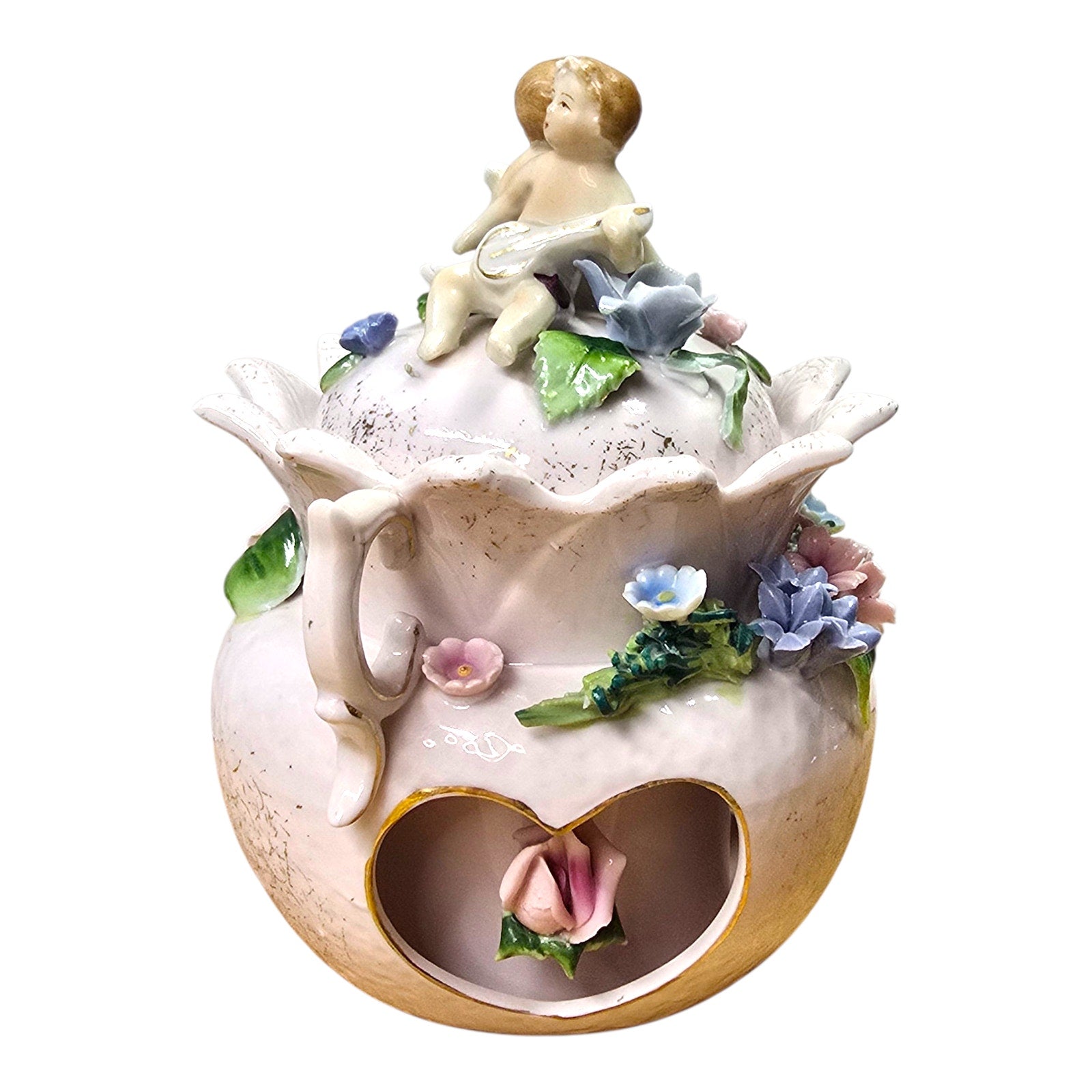 Vintage Capodimonte Style Porcelain Jar Cherub Lid Floral Applied Flowers Pink