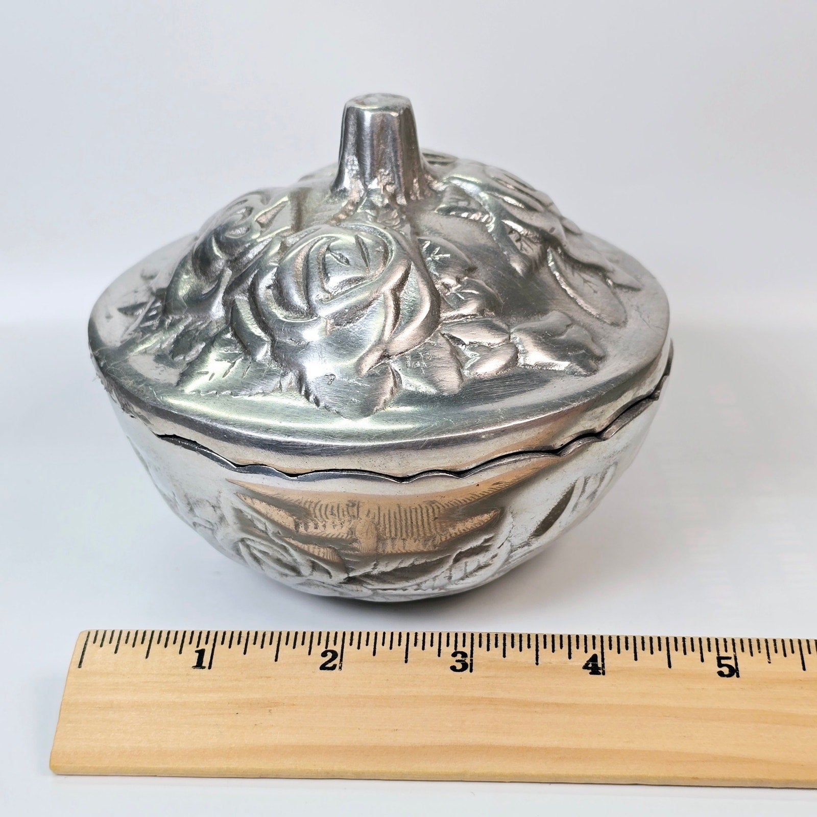 Vintage Cast Metal Embossed Rose Lidded Bowl