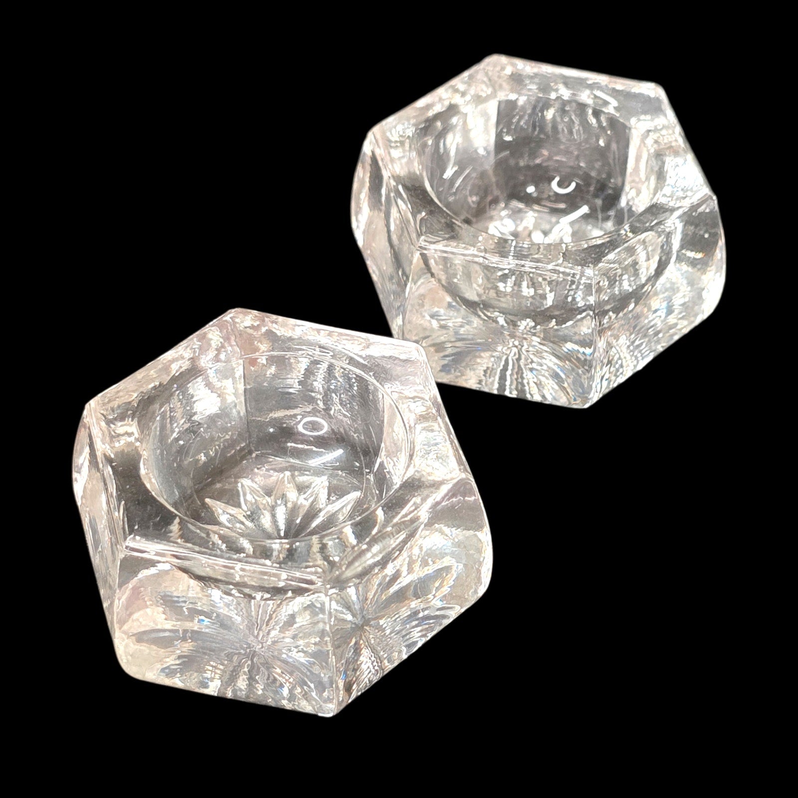 Vintage Clear Glass Salt Cellars Hexagonal Glows Under UV Blacklight Uranium