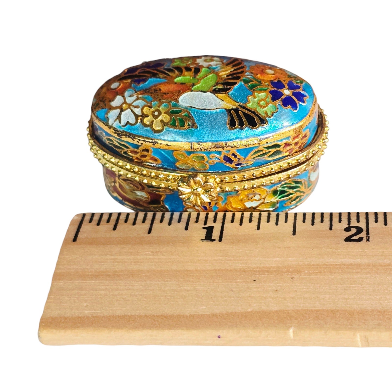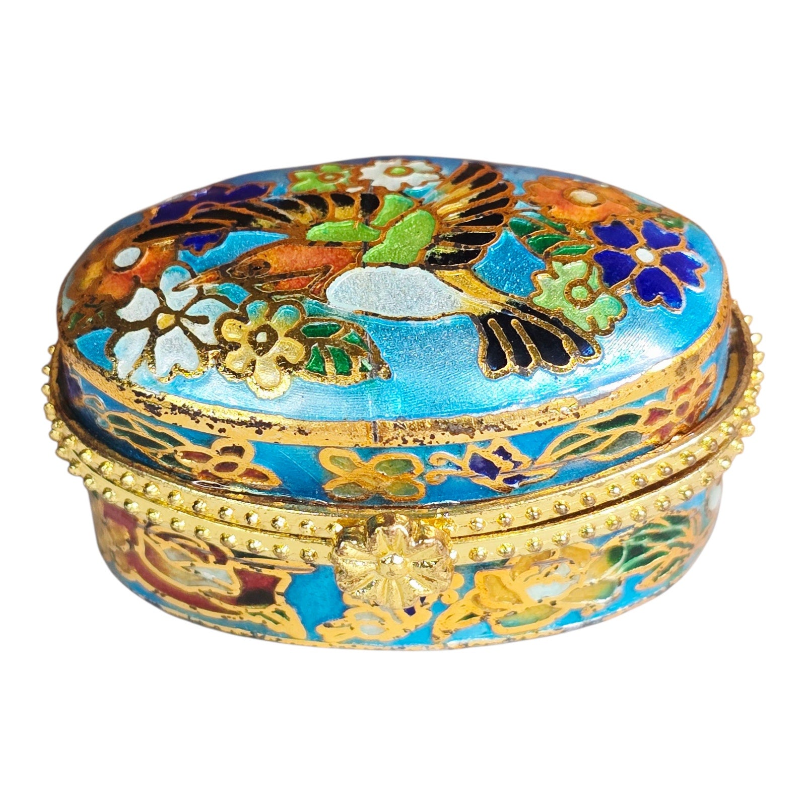 Vintage Cloisonne Trinket Box - Hummingbird & Flowers