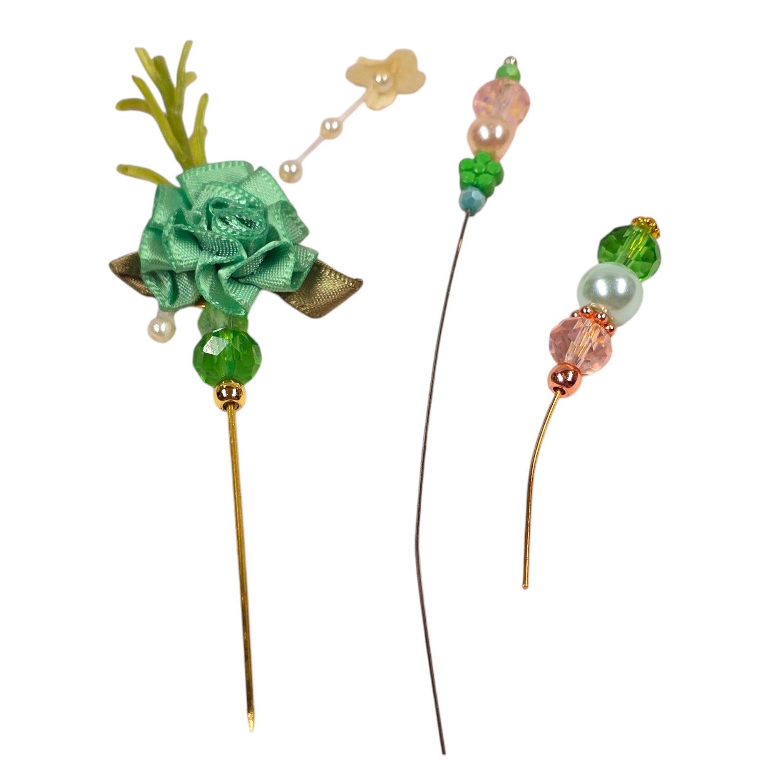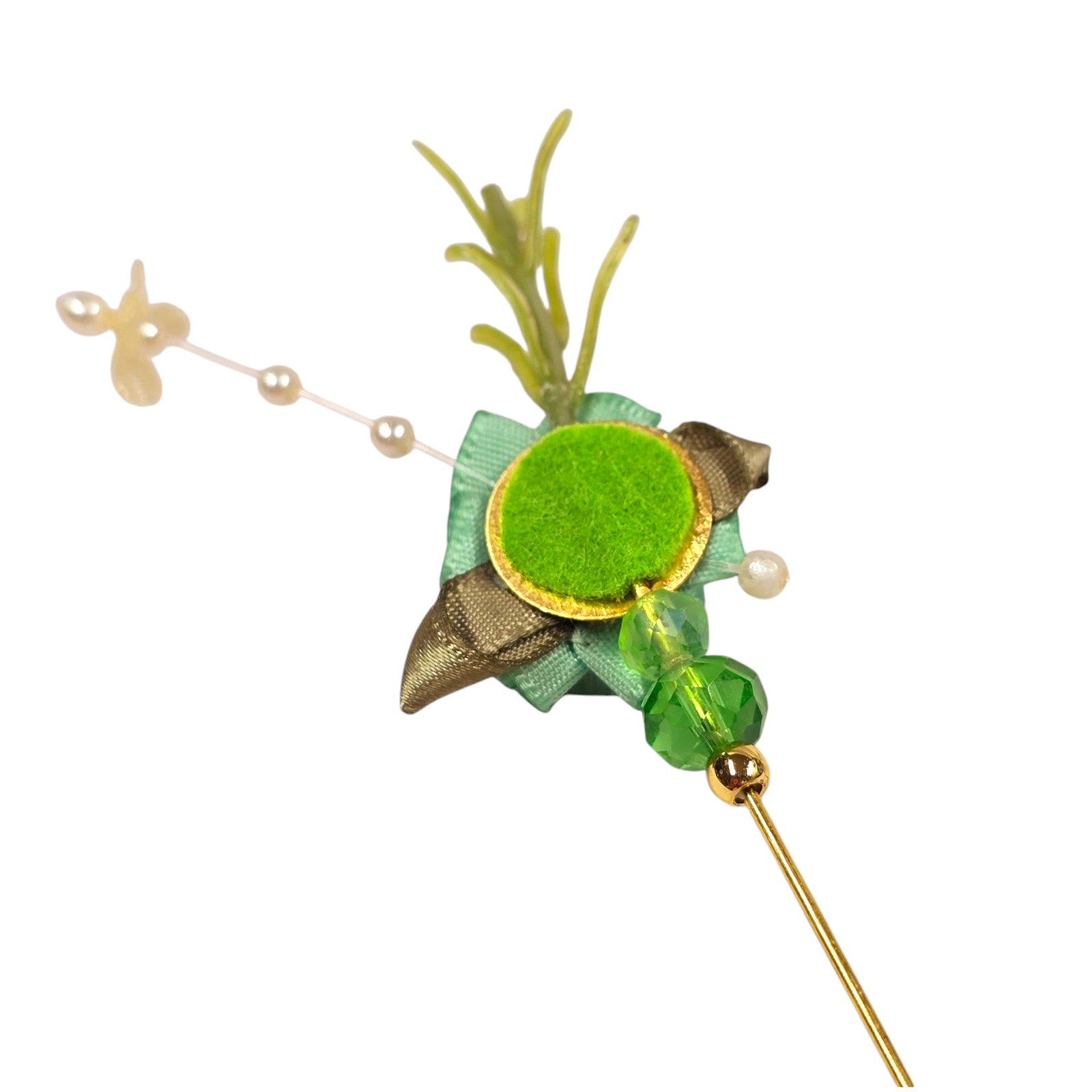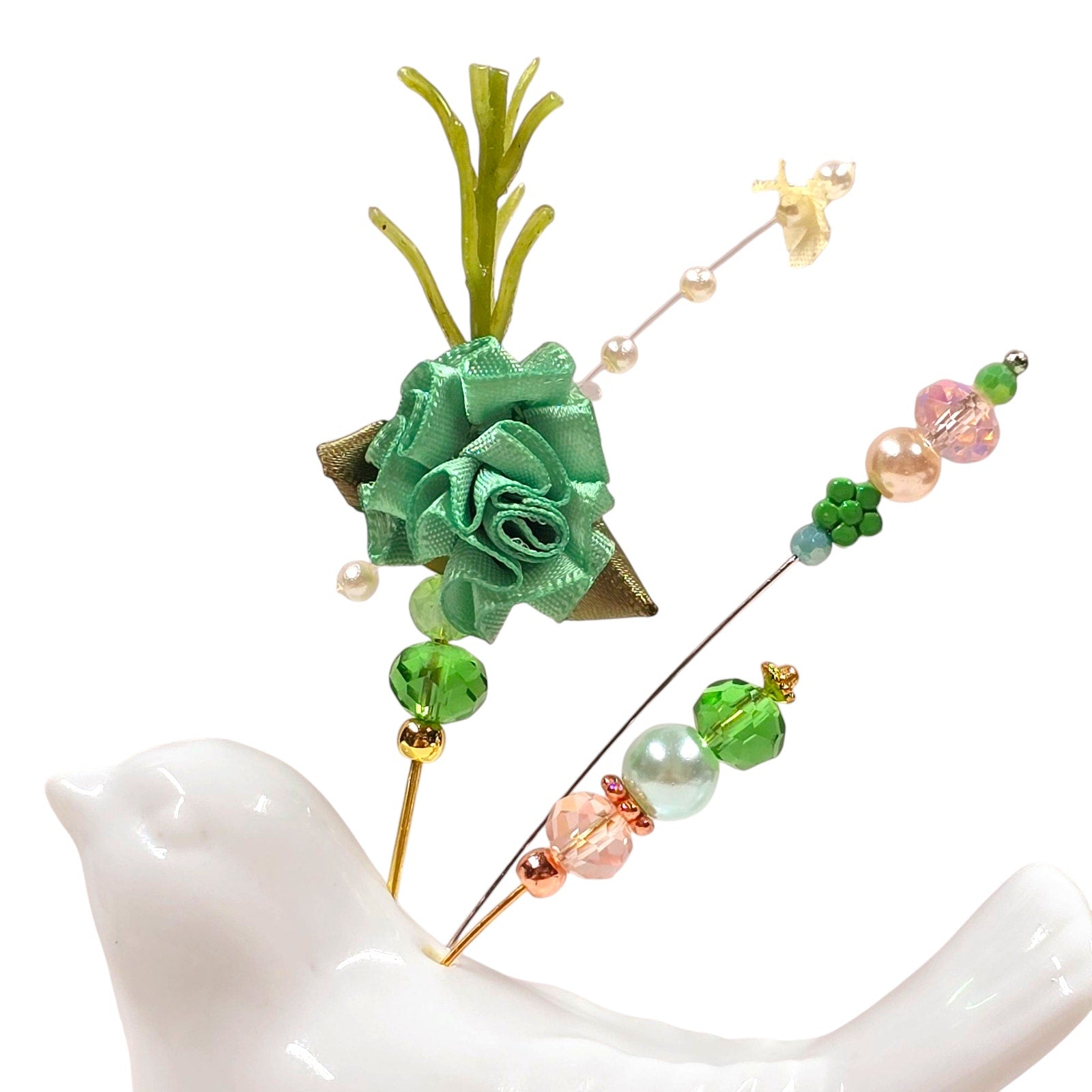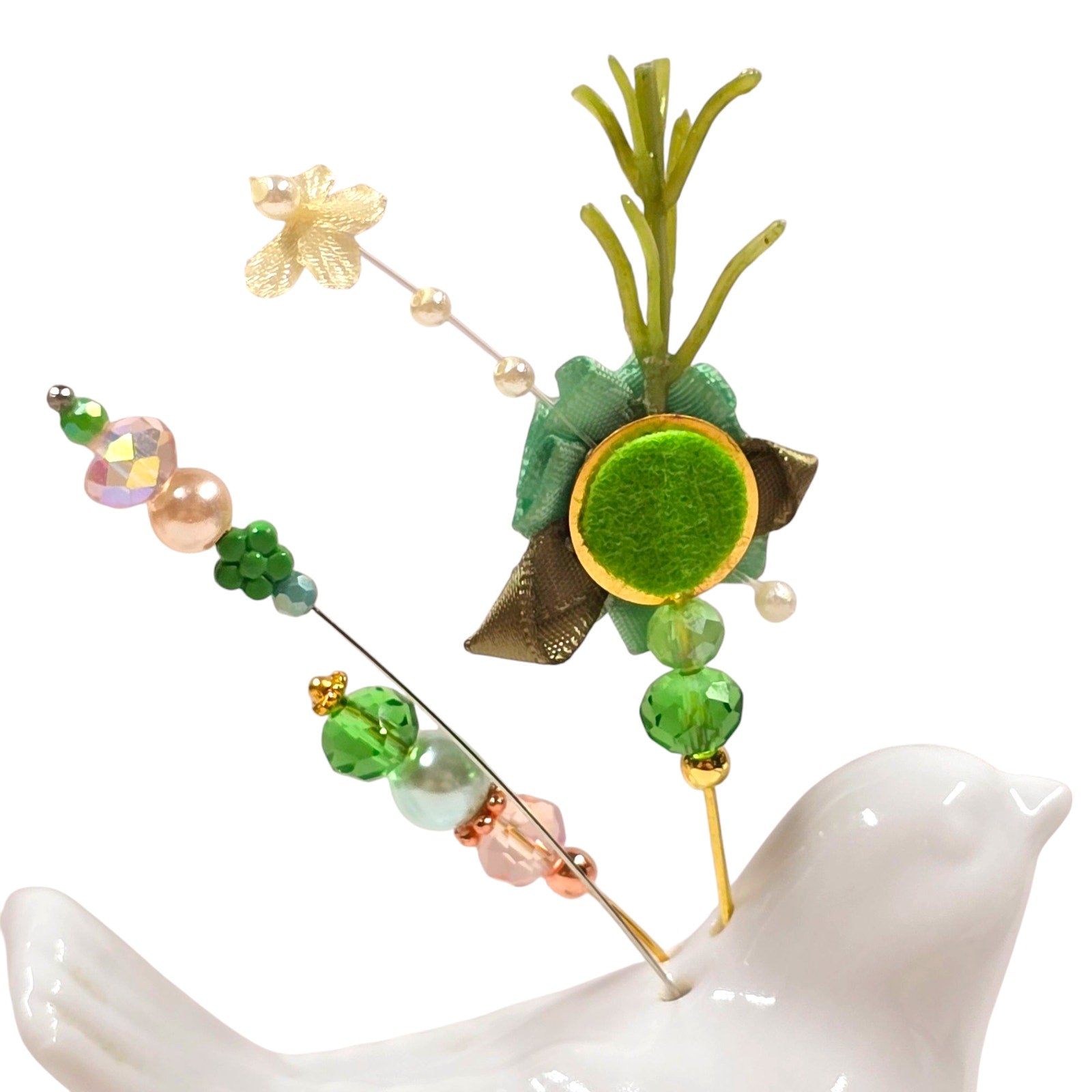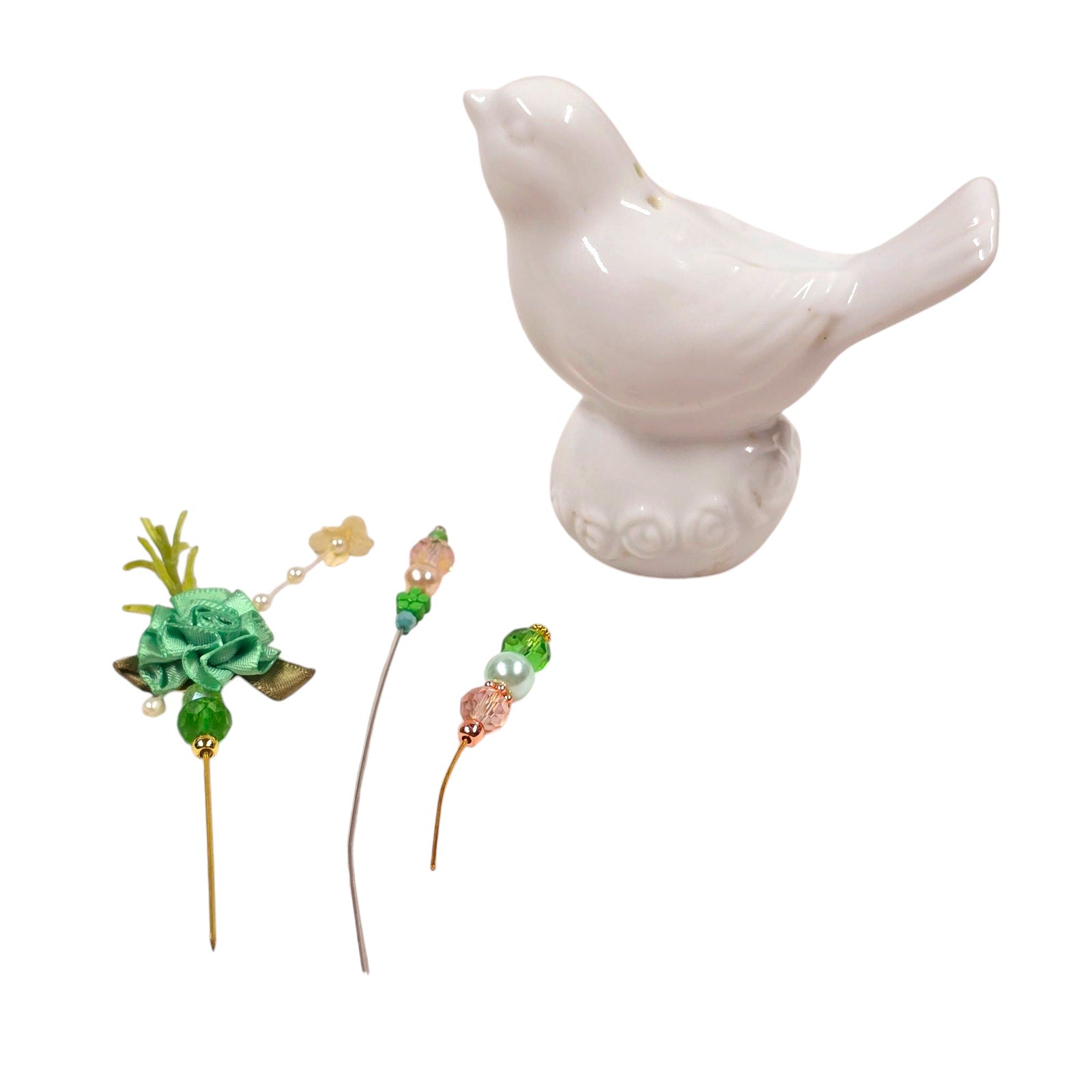 Vintage Green Floral Accent White Bird Salt Shaker Hat Pin Display