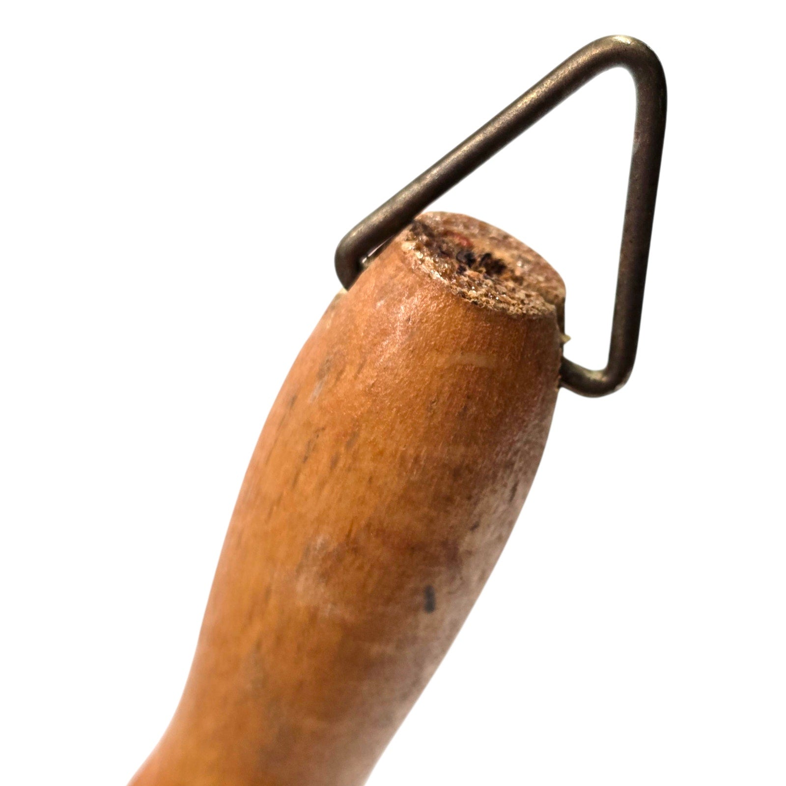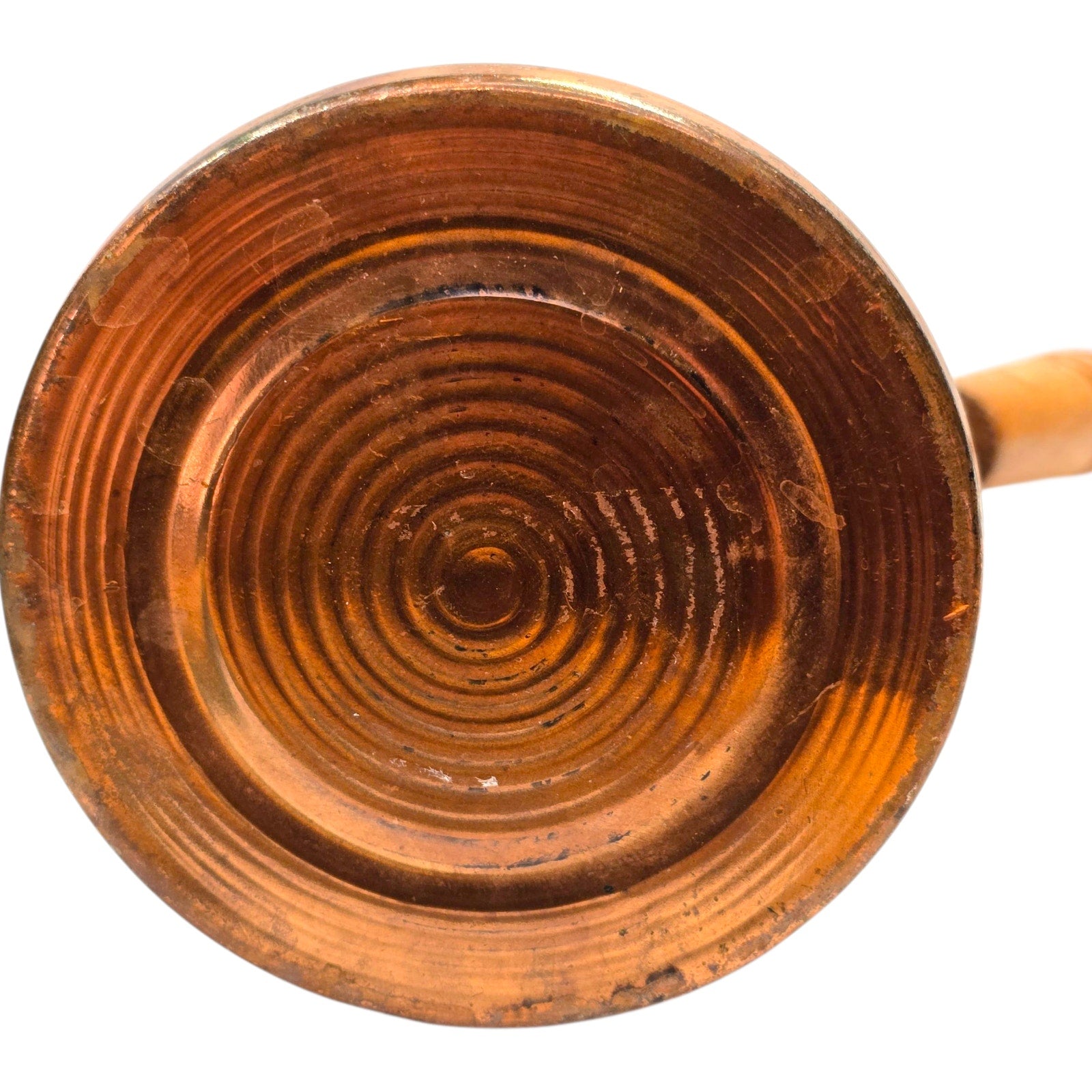 Good vintage condition with visible patina and wear from age. Interior shows some tarnish and darkening from past use. Handle end slightly rough near hanging loop. Structurally solid and display-ready.