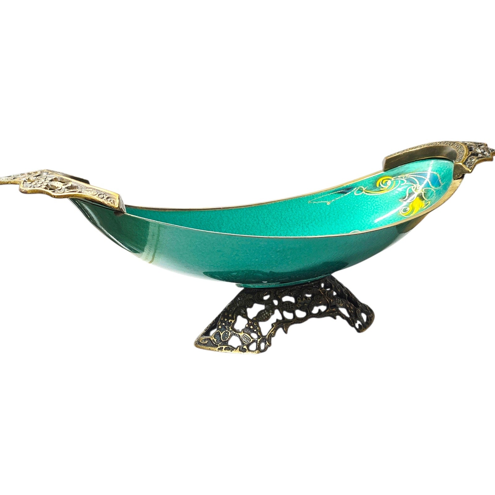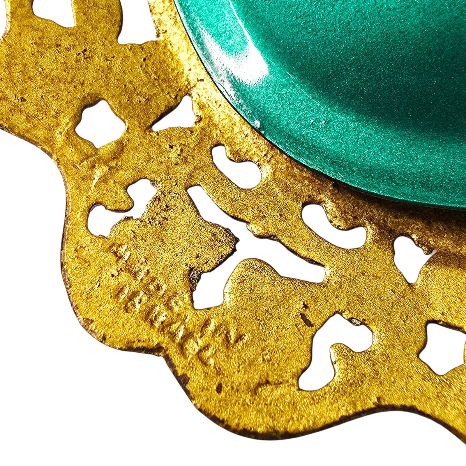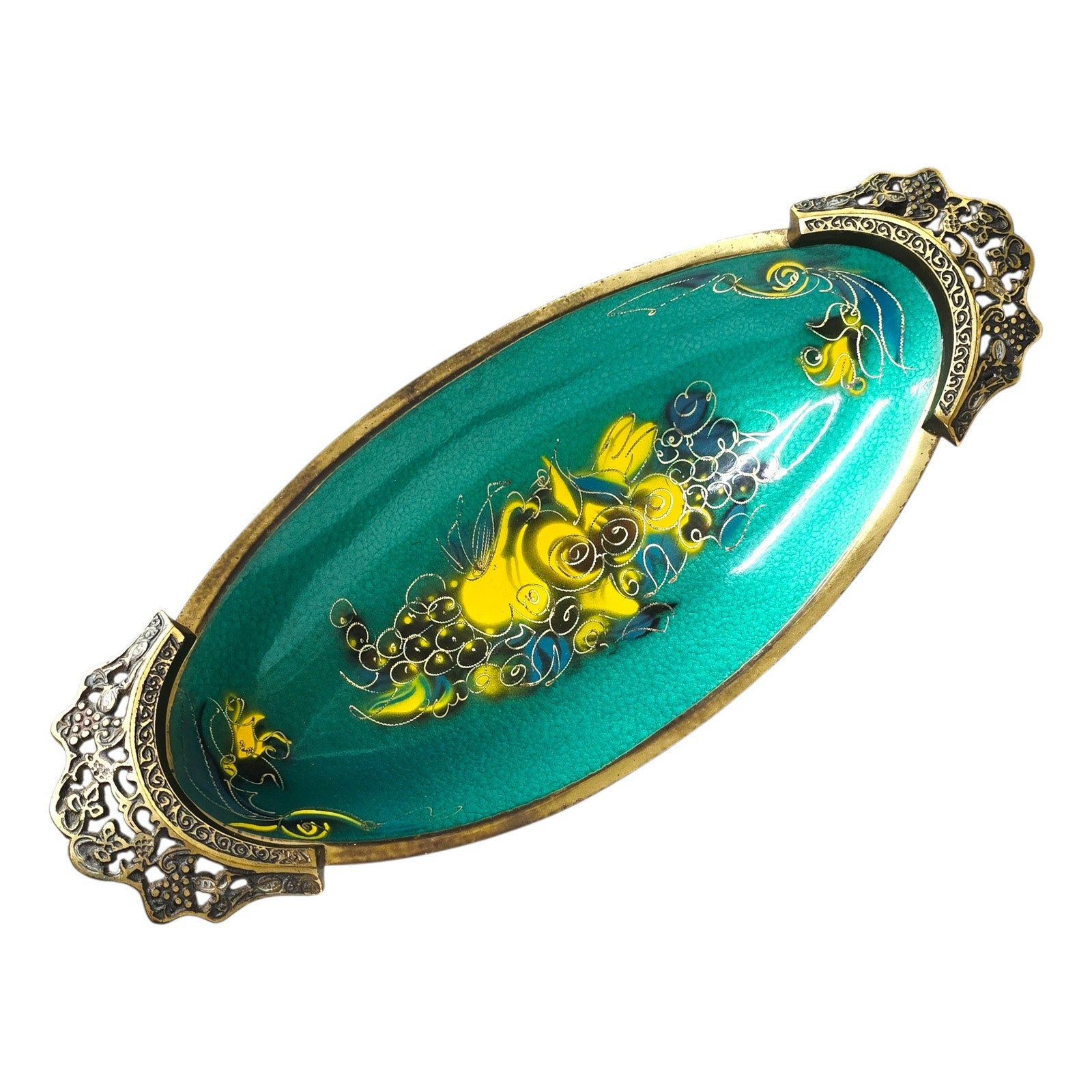 During the 1950s and '60s, a movement called "Israeliana" metalwork became huge. Makers like Dayagi, Oppenheim, and Pal-Bell specialized in using brass as the base because it was sturdy and looked like gold when polished, but they would "cold enamel" or hand-paint the colorful sections (often in turquoise, deep greens, or blues).