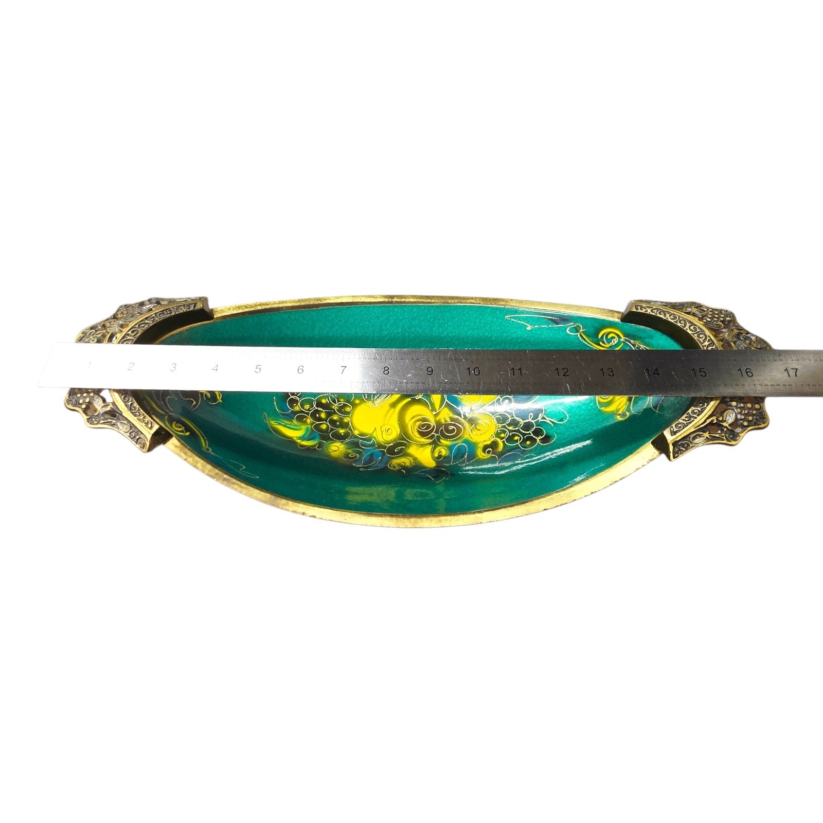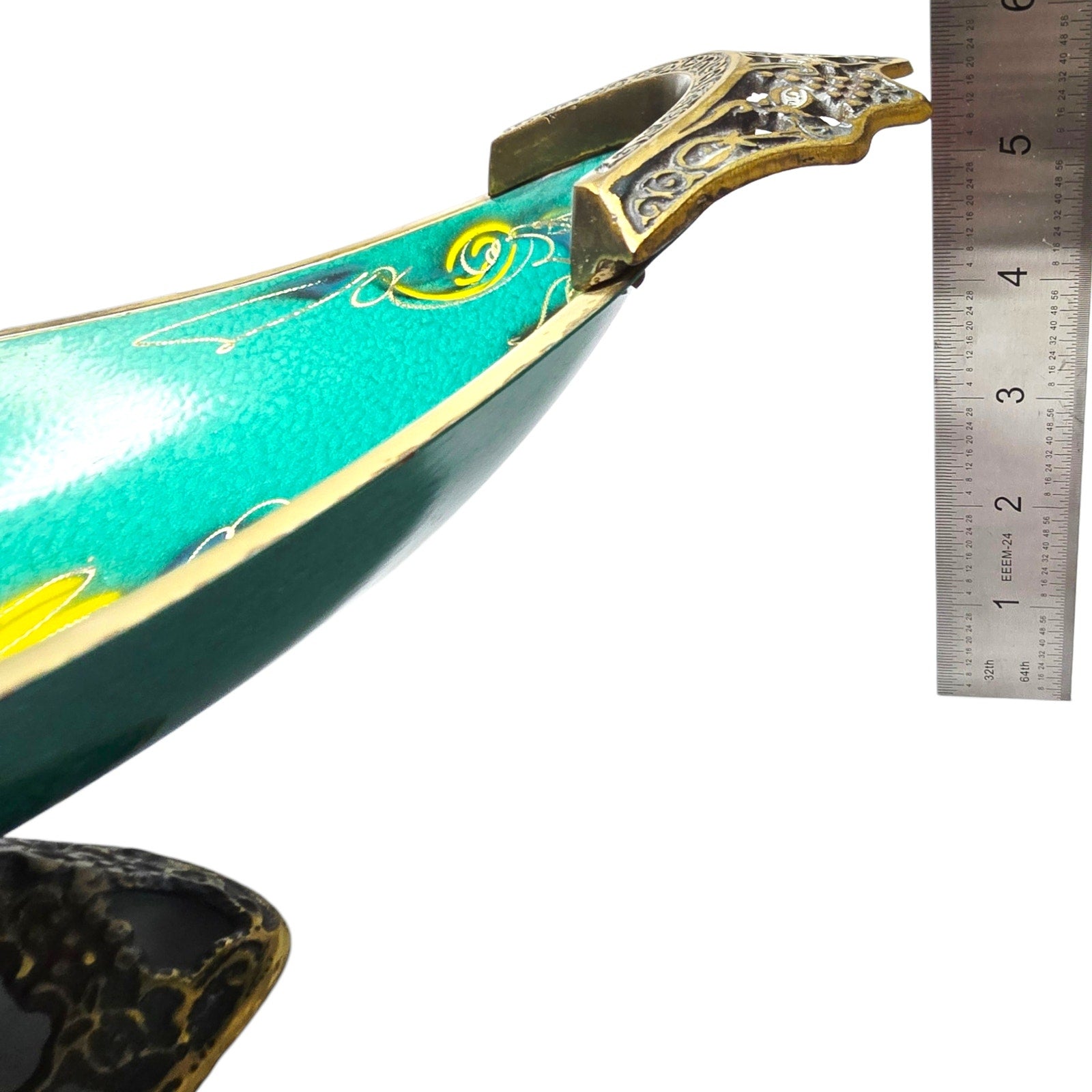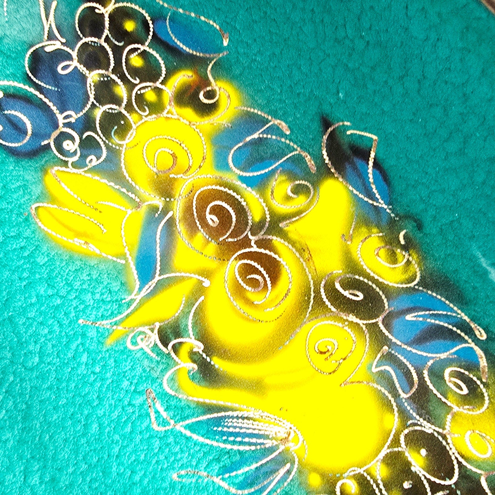 During the 1950s and '60s, a movement called "Israeliana" metalwork became huge. Makers like Dayagi, Oppenheim, and Pal-Bell specialized in using brass as the base because it was sturdy and looked like gold when polished, but they would "cold enamel" or hand-paint the colorful sections (often in turquoise, deep greens, or blues).