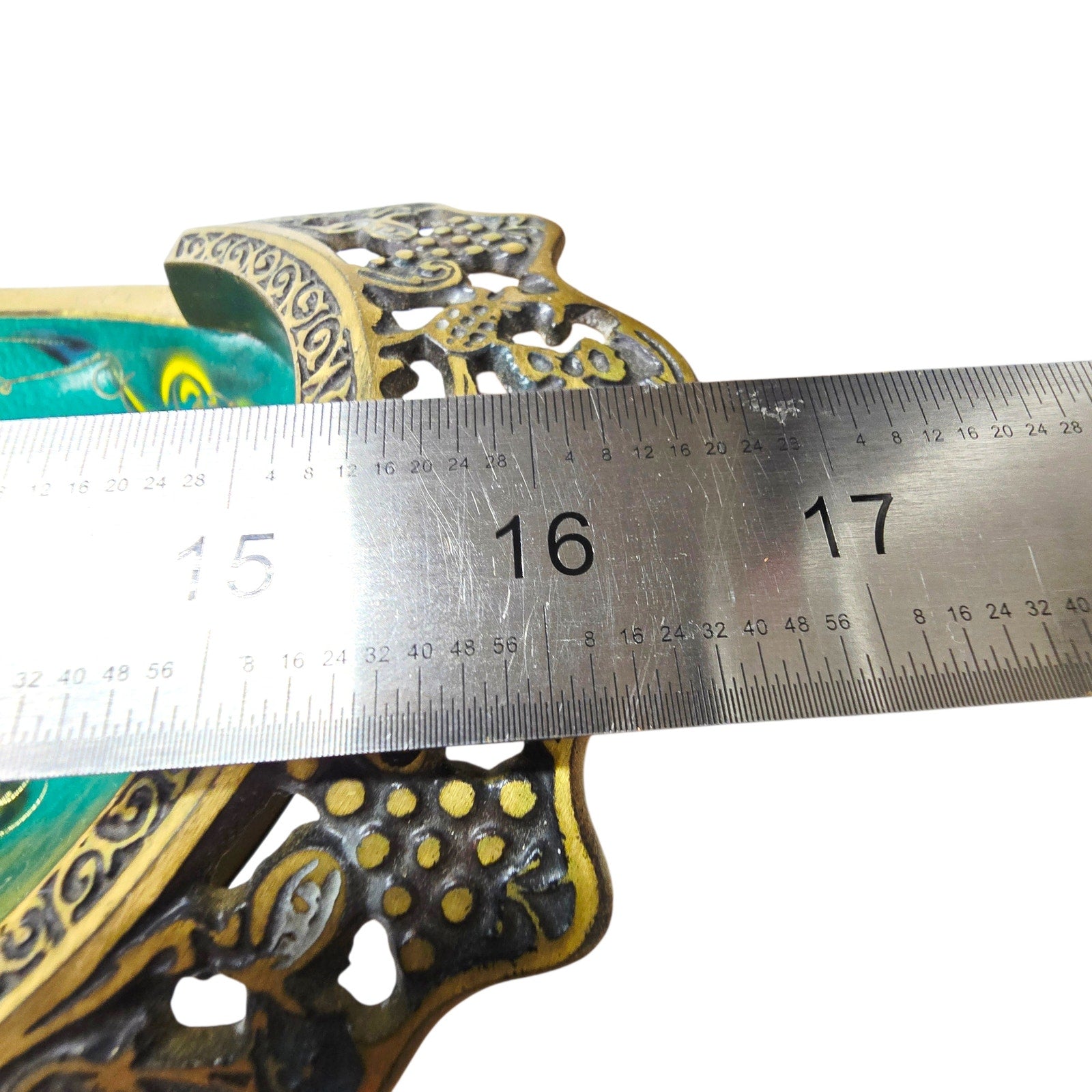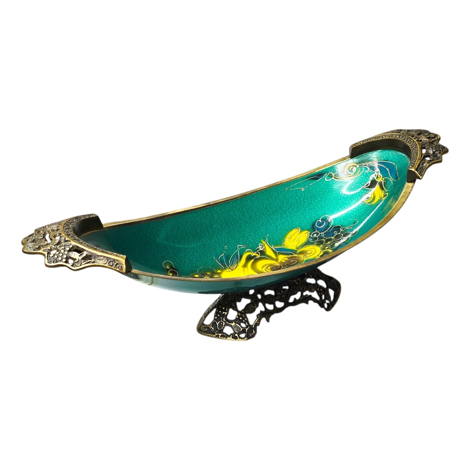 The reason these are so ornate is that they were originally intended as "Aliyah" or tourist gifts. In the early days of the State of Israel, the government encouraged the production of these artistic metal goods to build the local economy. The specific blue-green enamel used is often called "Eilat Stone" style, meant to mimic the color of the semi-precious stones found in the King Solomon Mines in southern Israel.