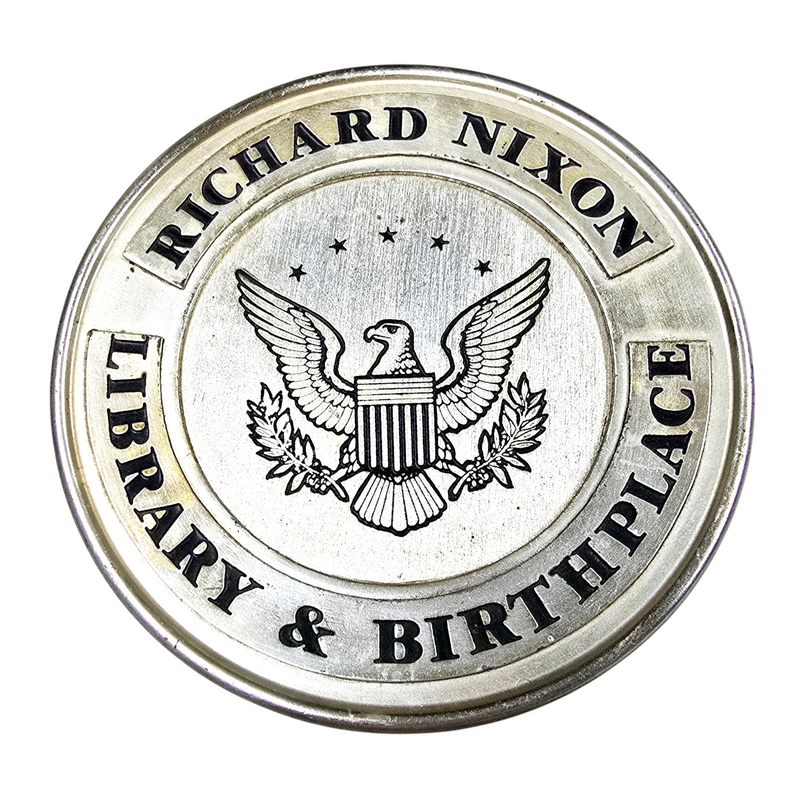 Vintage Richard Nixon Library & Birthplace Commemorative Plate, Beautiful Heavy Pewter Plate
