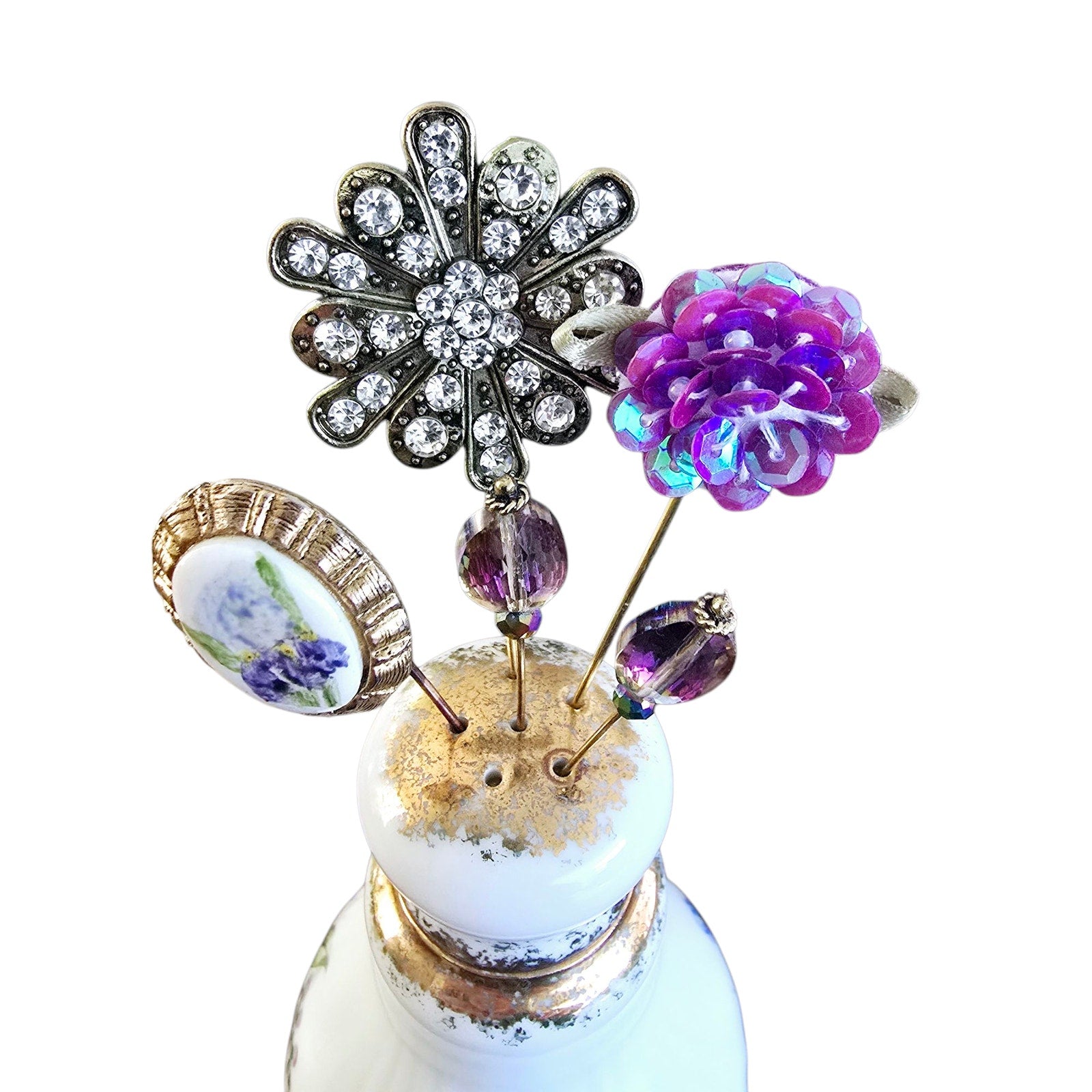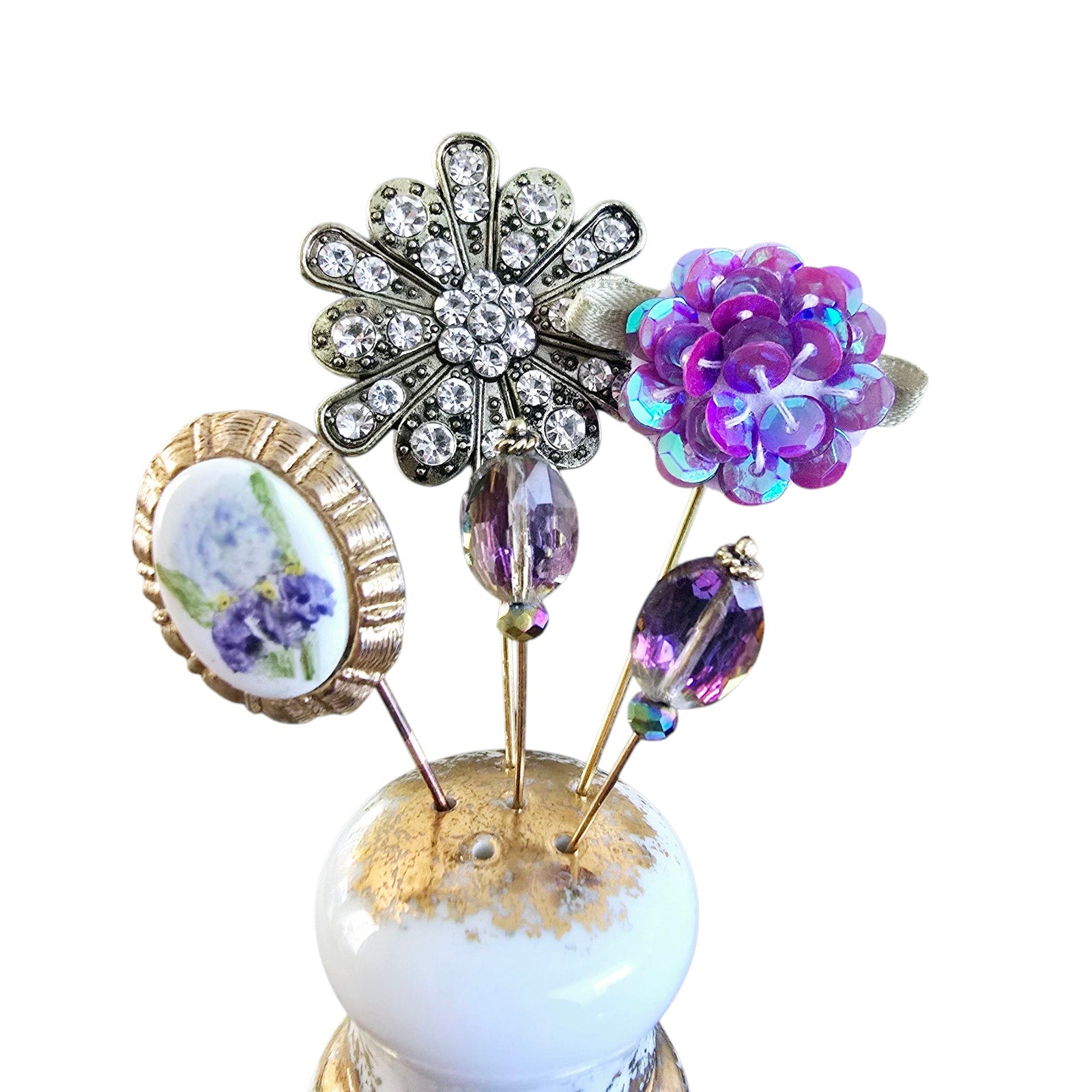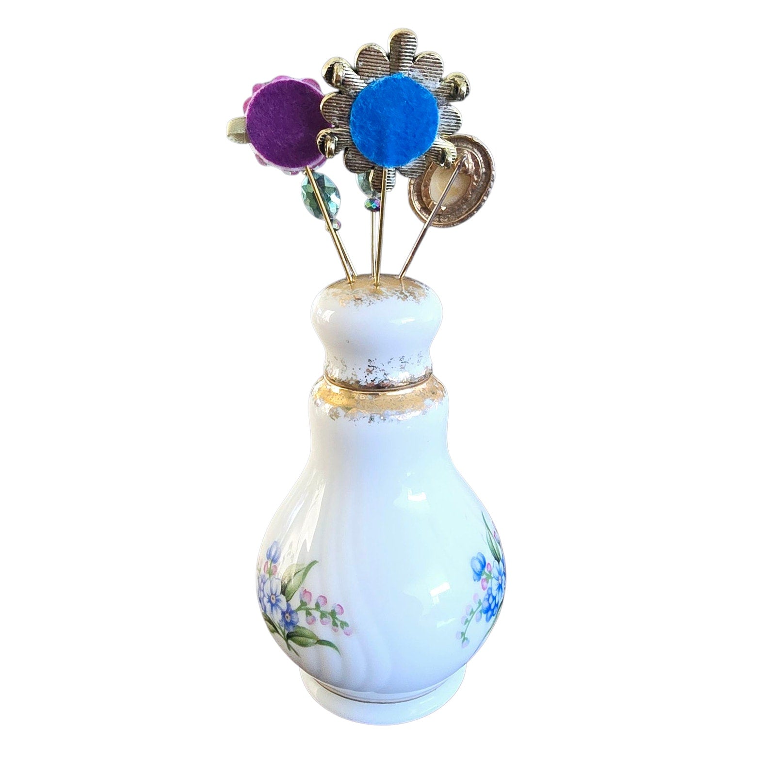 Vintage Shafford Forget Me Not Salt Shaker Hat Pin Display