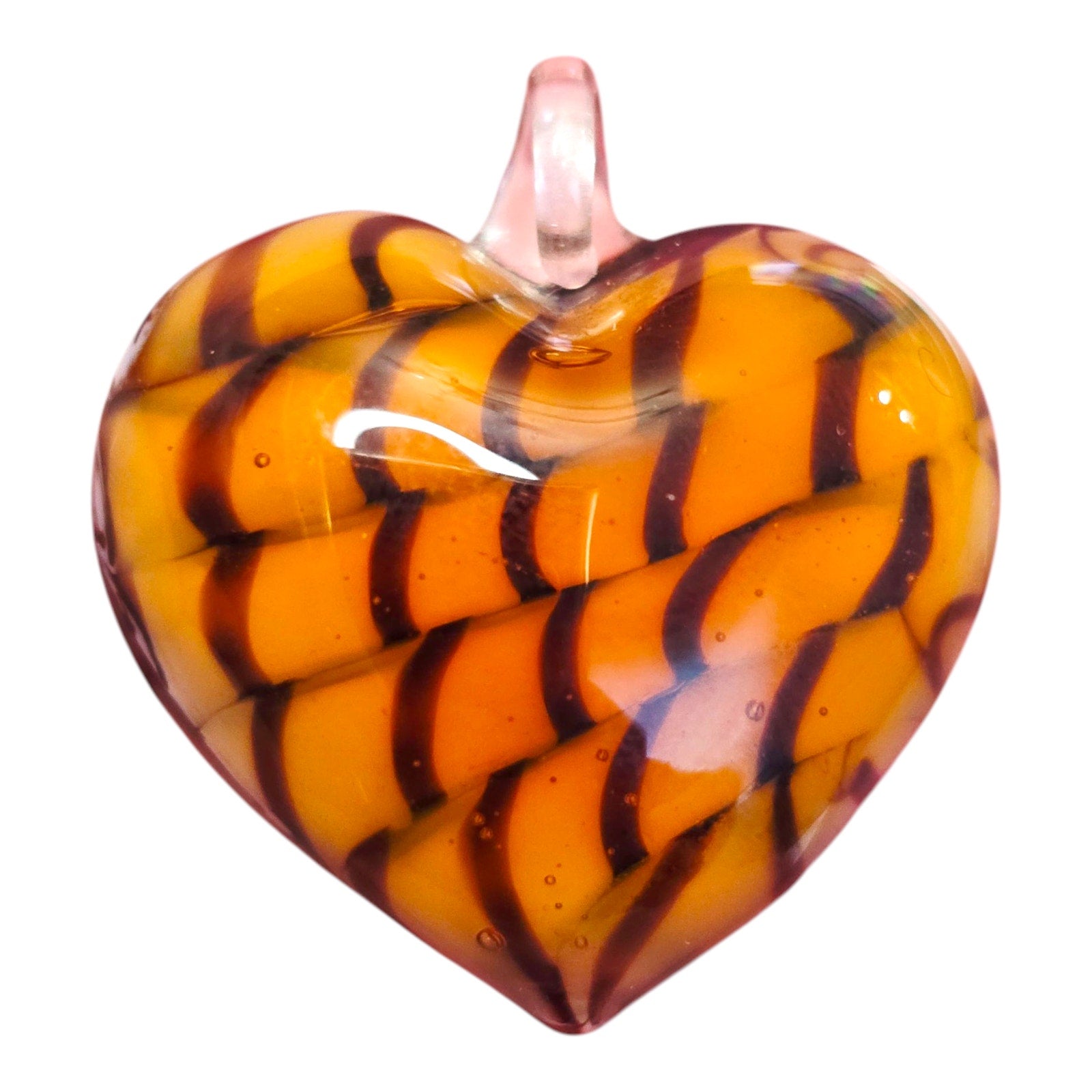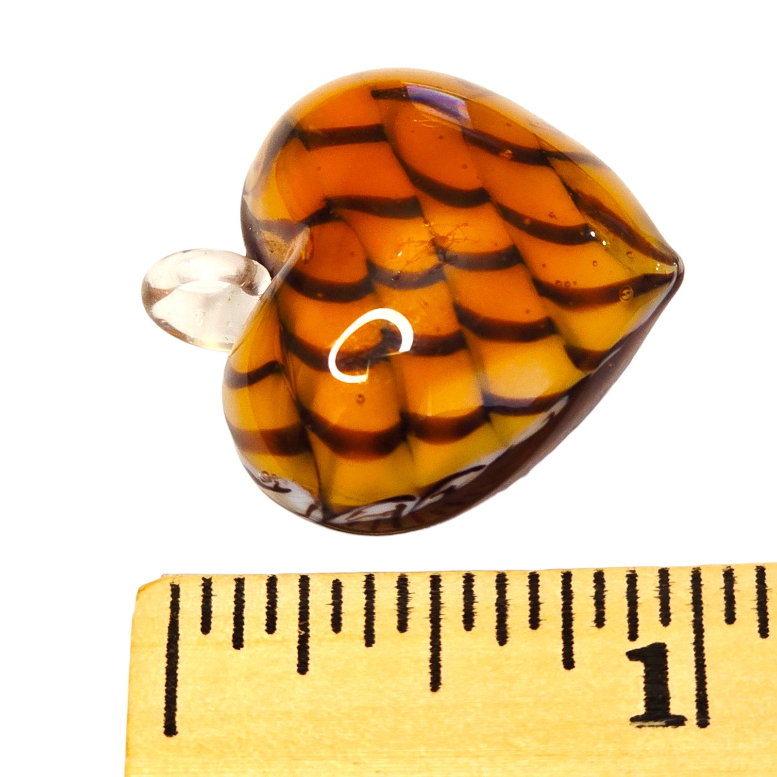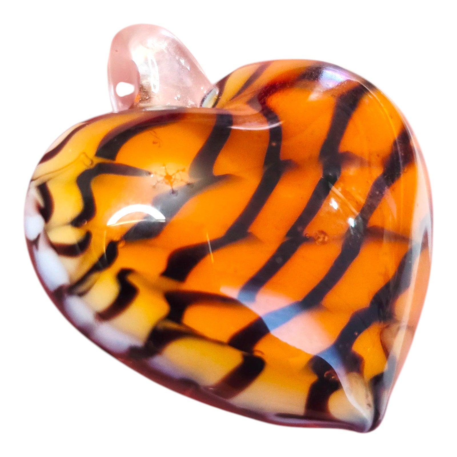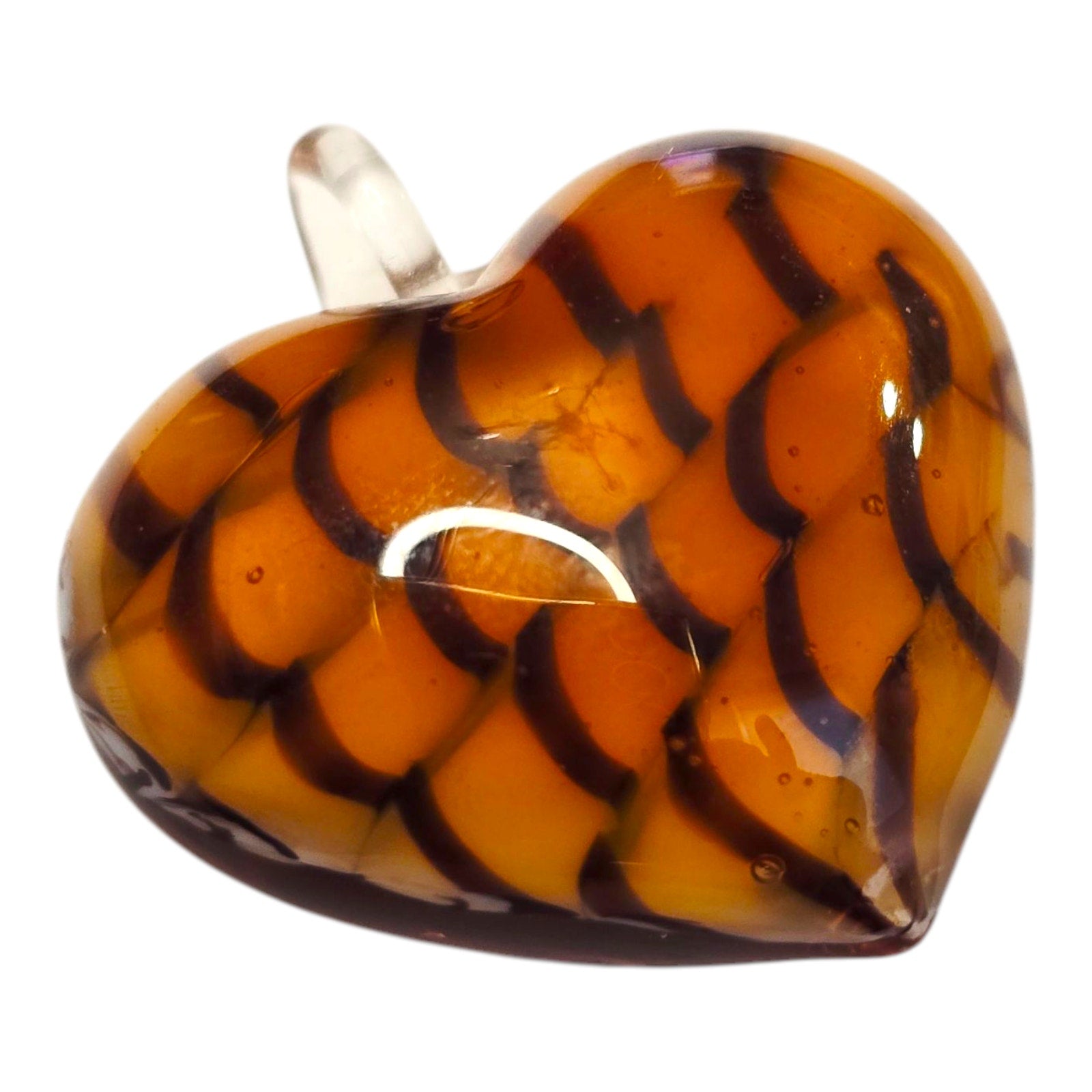 Vintage Venetian Art Glass Heart Pendant Tiger Stripe Puffy Heart