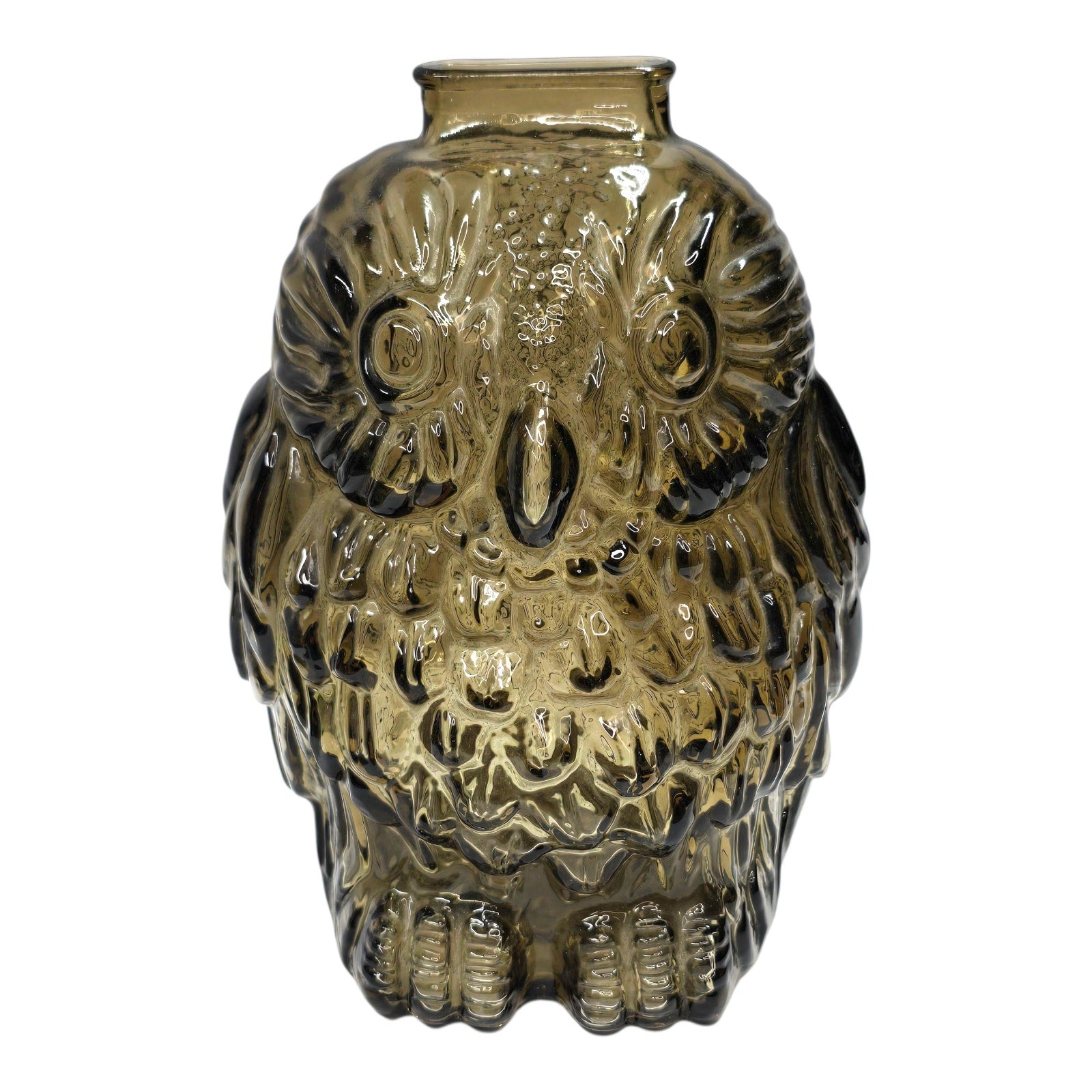 Vtg Anchor Hocking Wise Old Owl Smoke Glass Smoky Topaz Gray Brown Coin Bank MCM