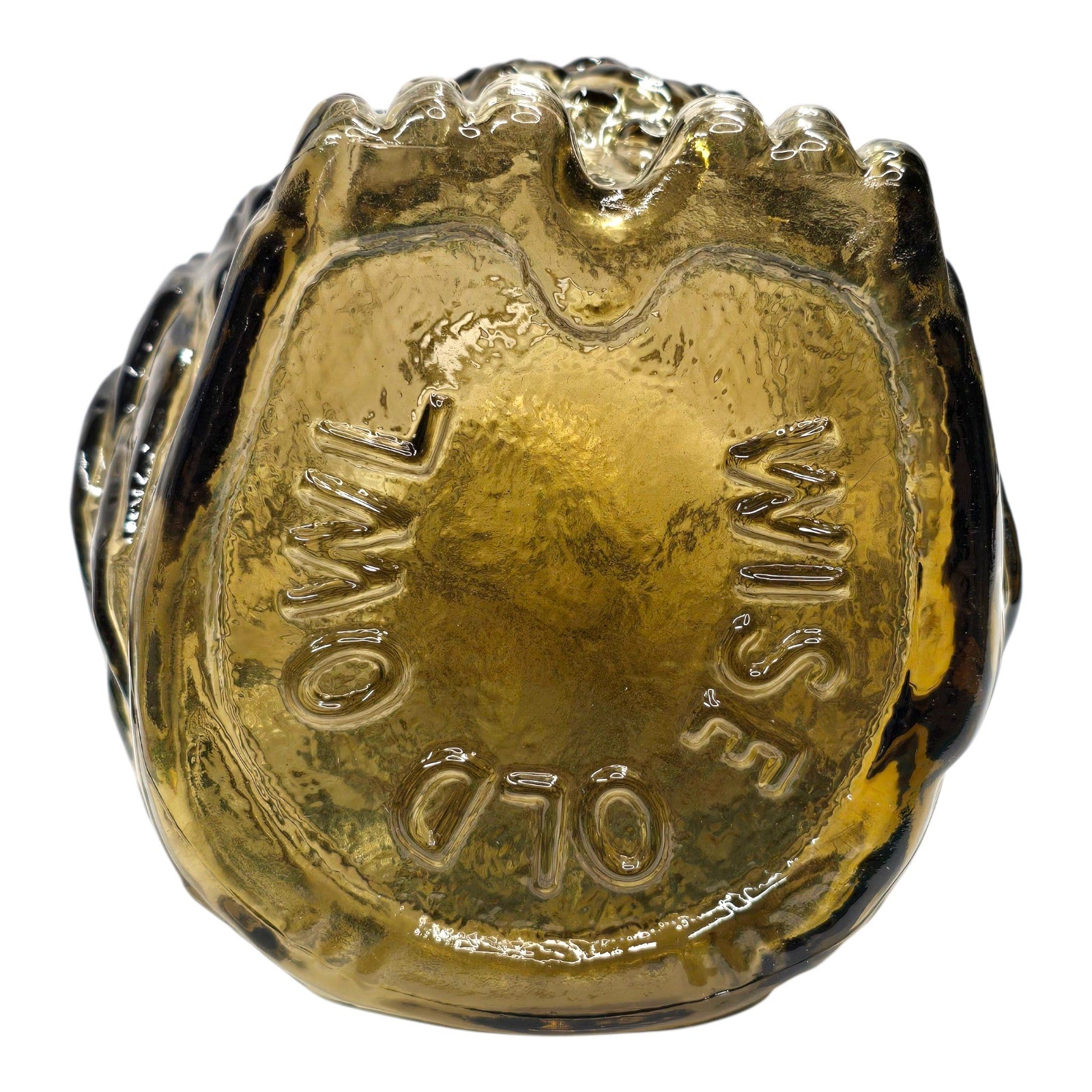 Vintage Anchor Hocking amber glass coin bank in the shape of an owl, marked “Wise Old Owl” on the base. Measures 6.25" tall. Great mid-century accent piece or collectible glass decor item.