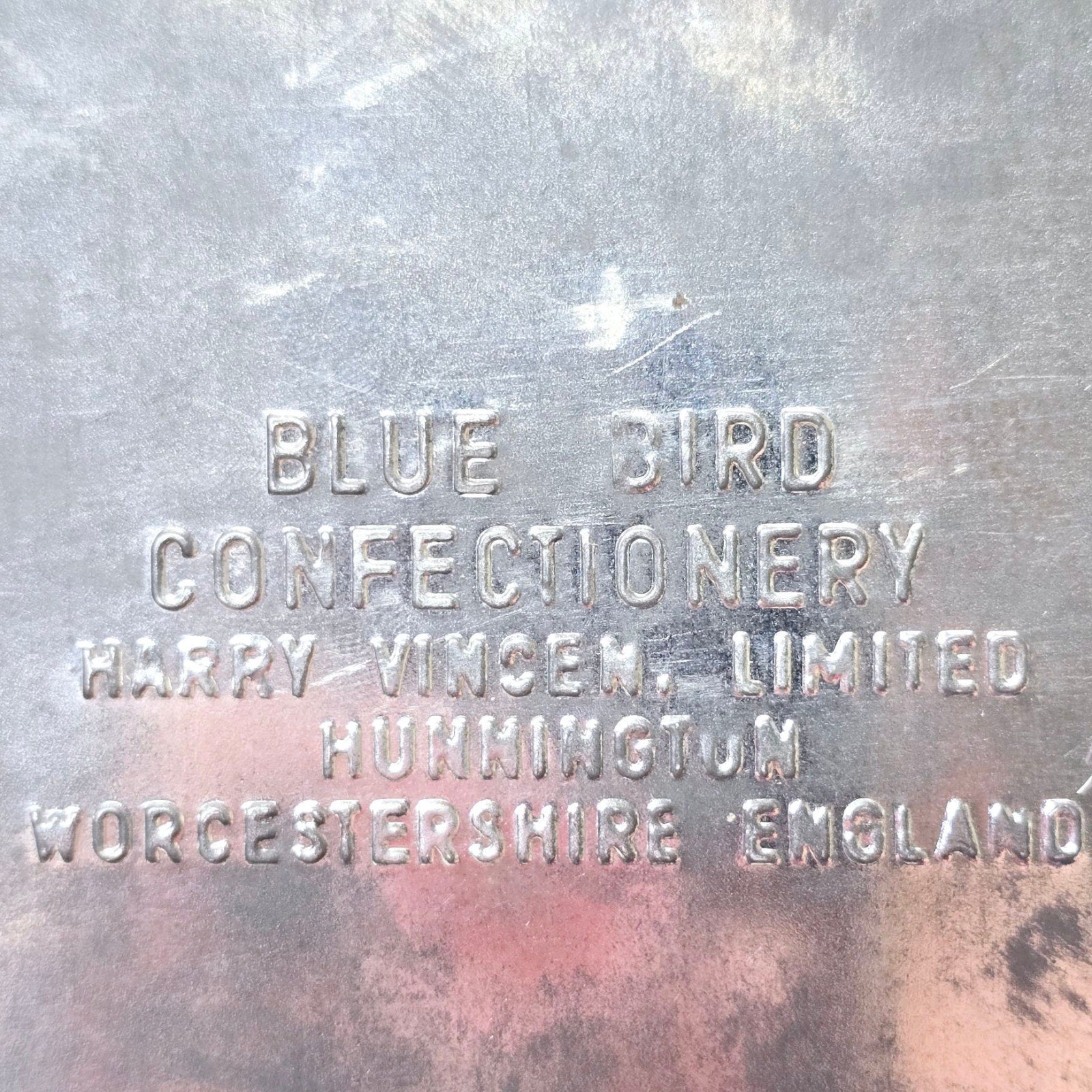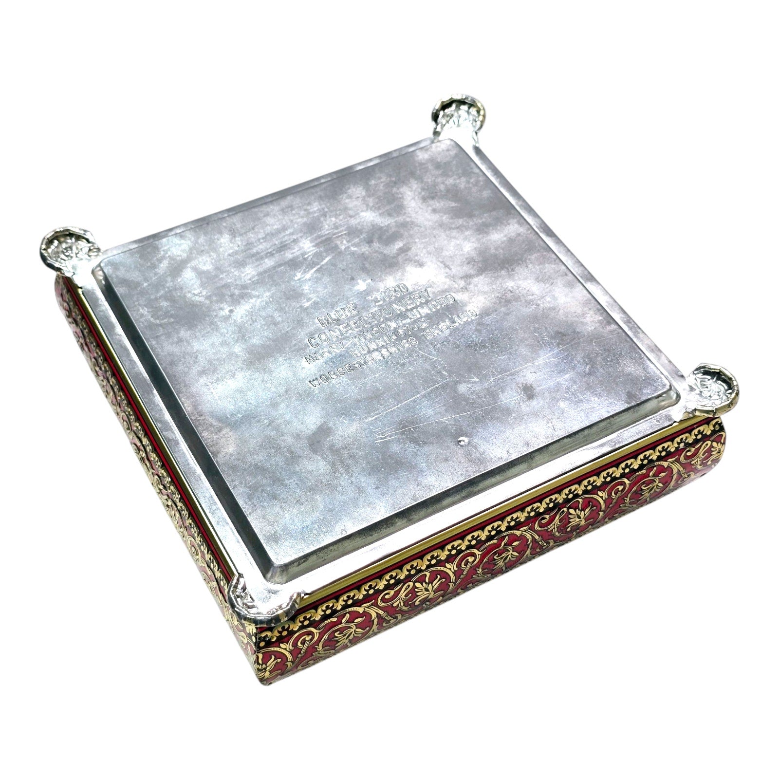 Vtg Blue Bird Confectionery Tin, Red with Gold Rise, Harry Vincent Ltd Worcestershire England