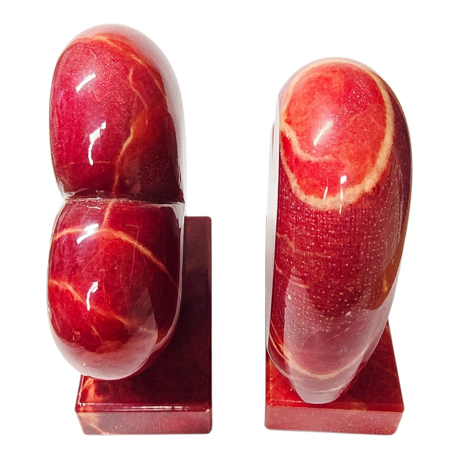Vtg Ducceschi Italian Alabaster Red Heart Bookends Mid Century MCM Italy 8 lbs