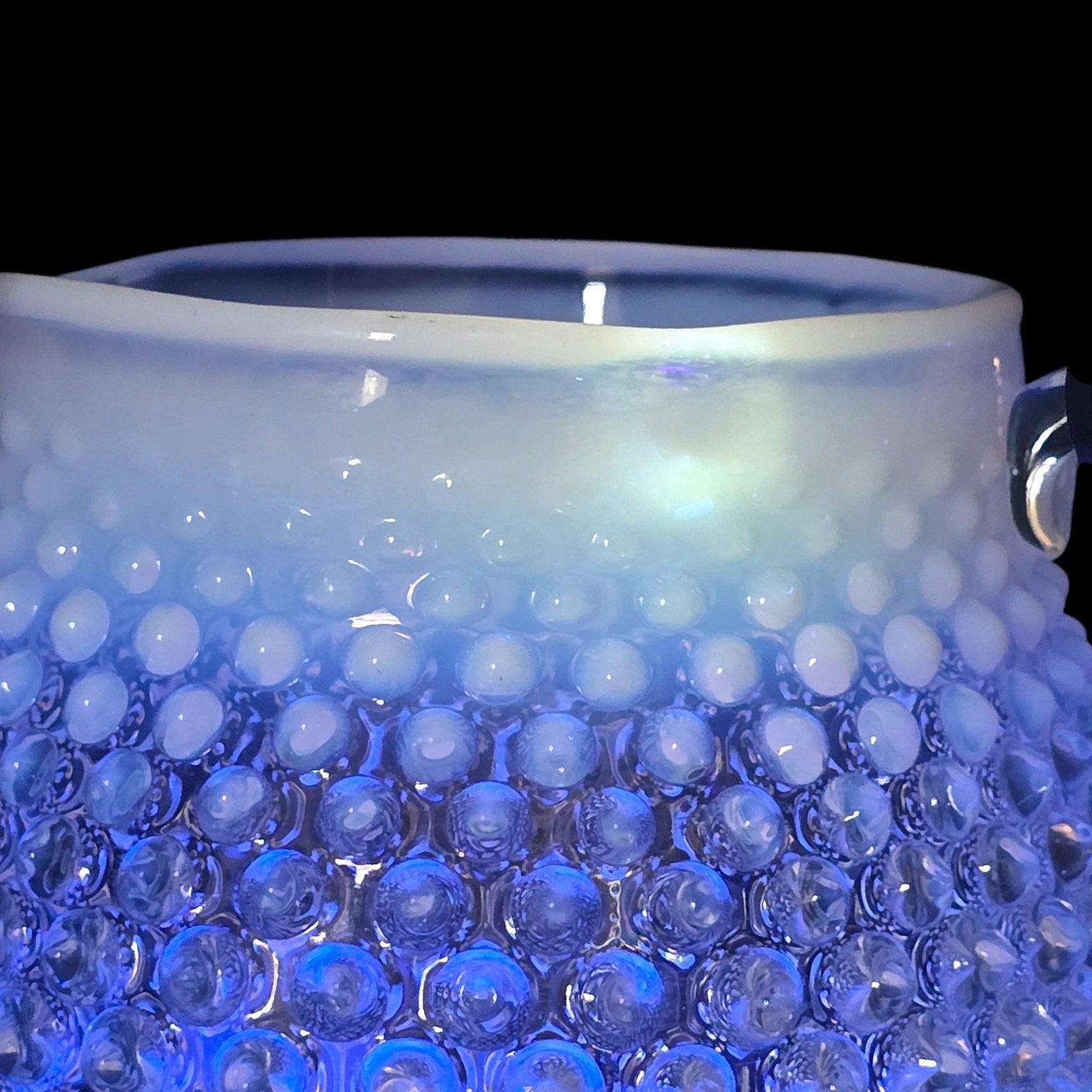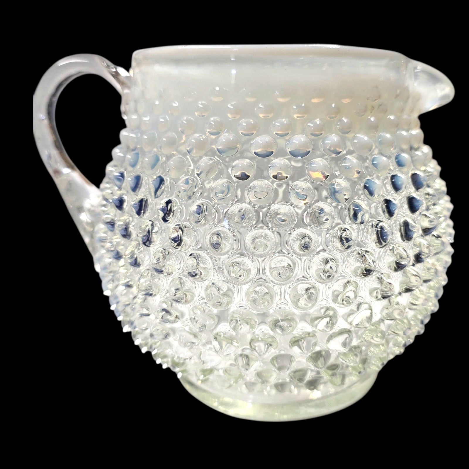 Vtg Fenton Hobnail Opalescent Glass Creamer Pitcher Jug Glowy Handle 5.25" H