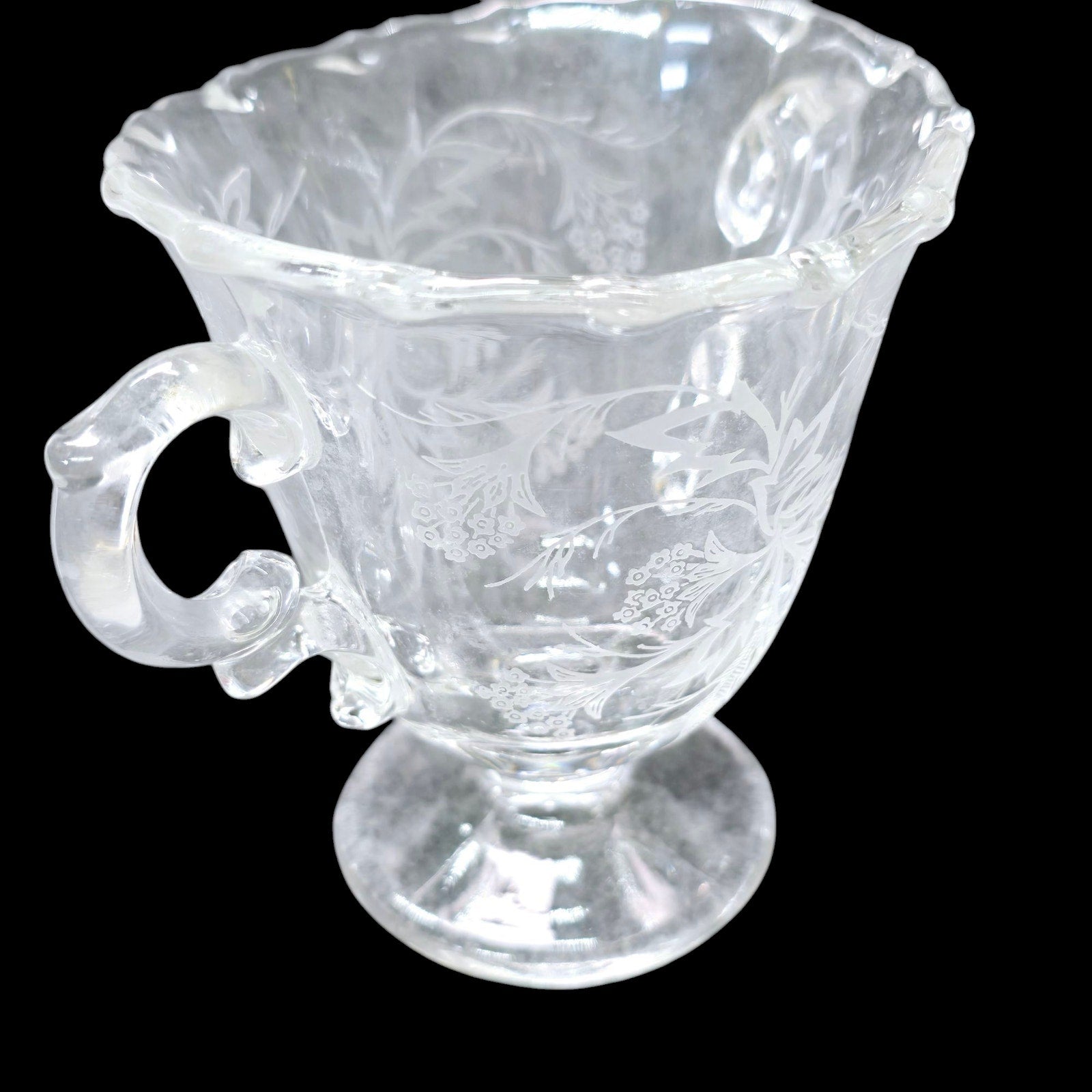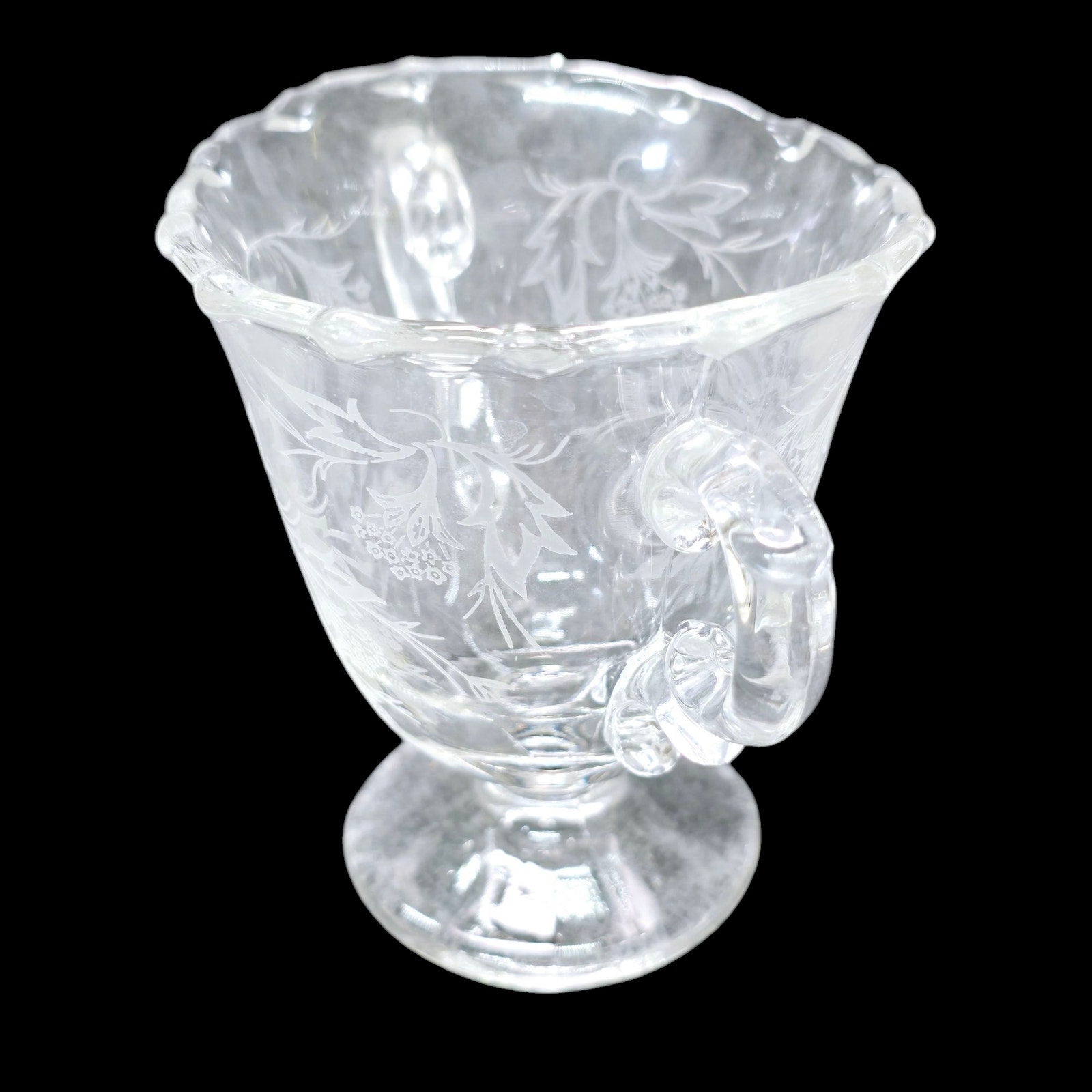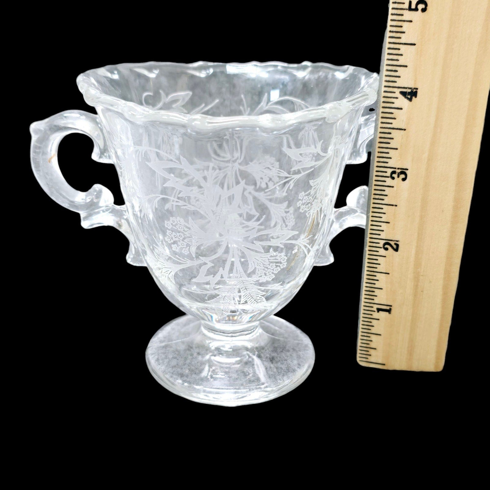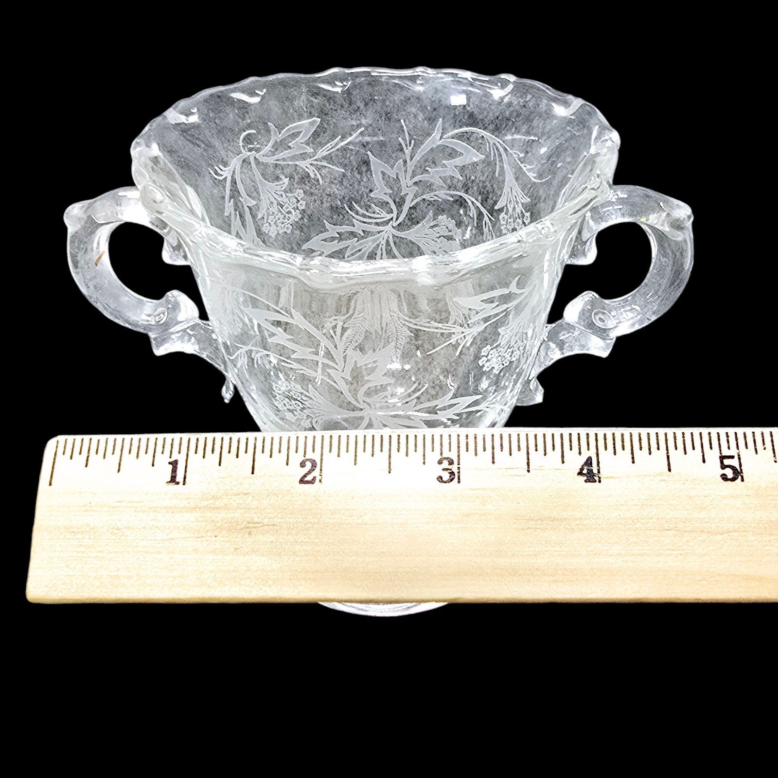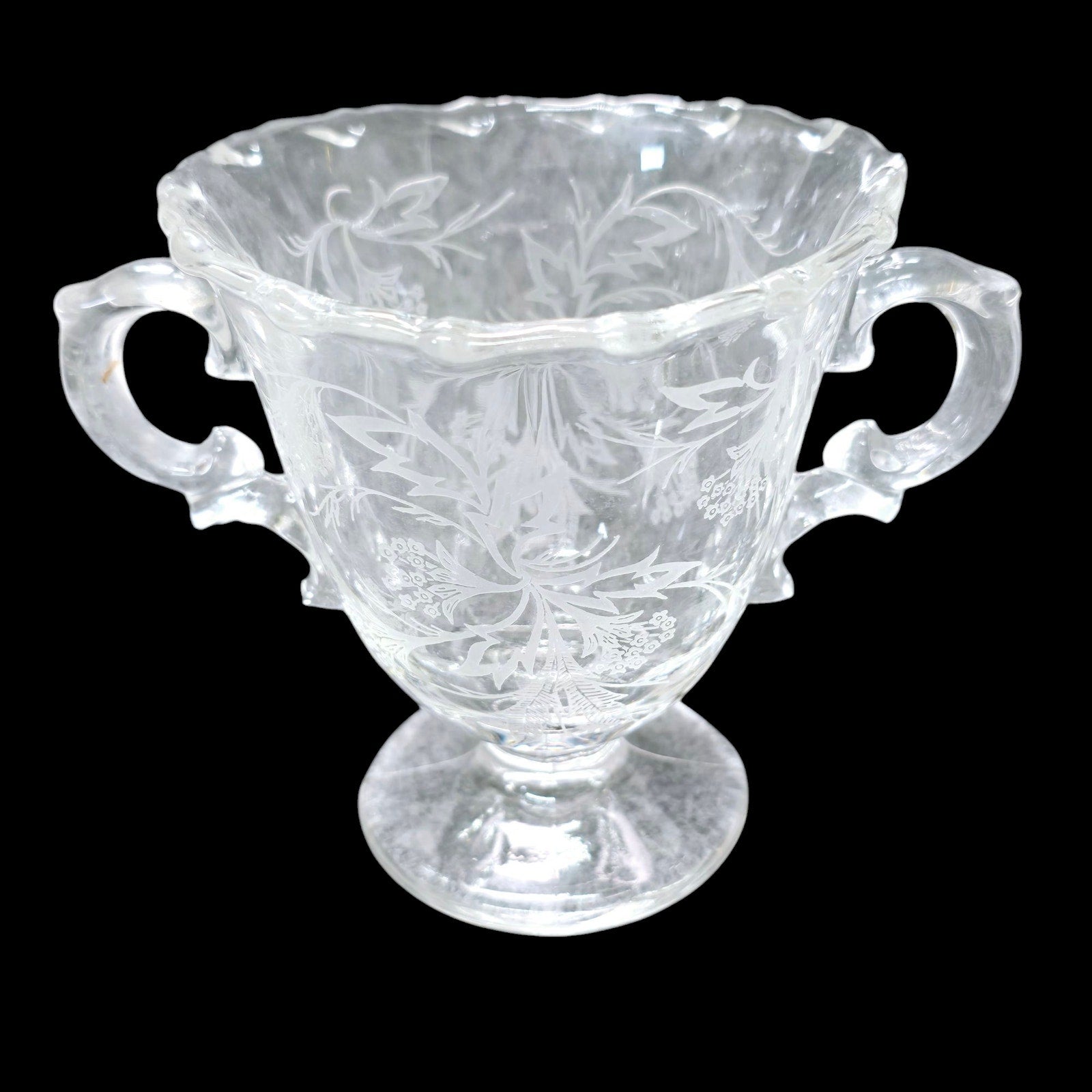 Vtg Fostoria Heather Glass Sugar Jar w/ Handles Baroque Style Floral Leaf Pattern