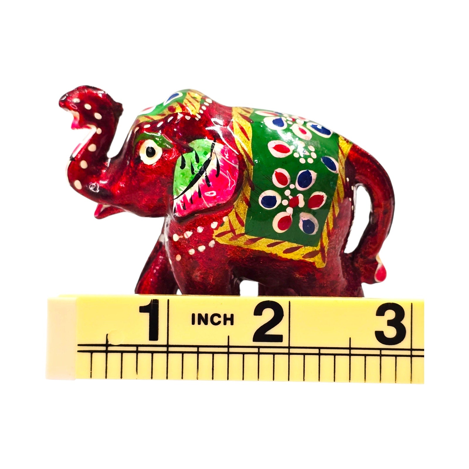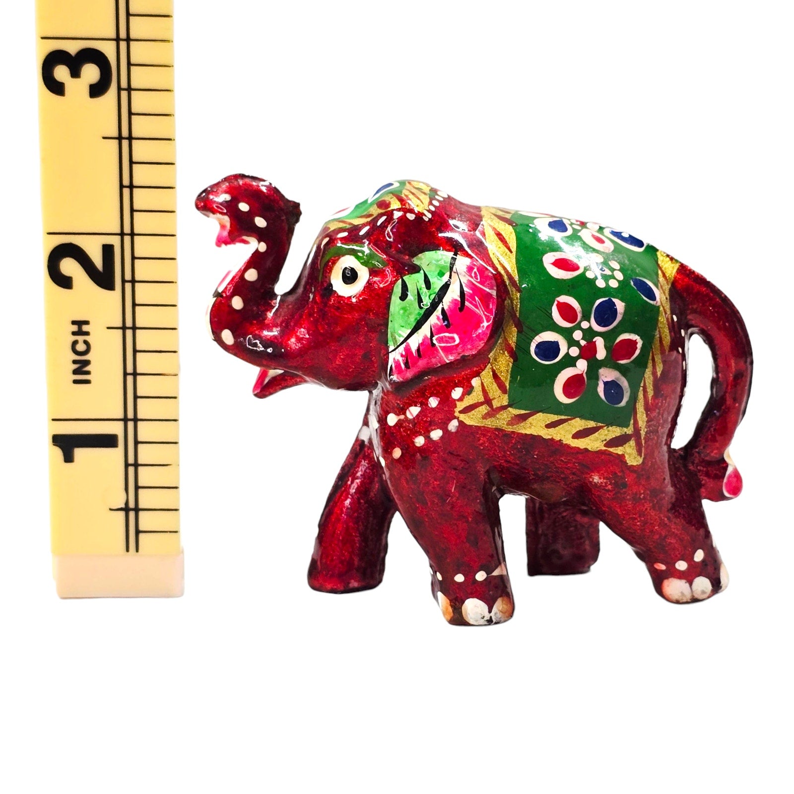 Vtg Hand Painted Mini Elephant Figurine Red Green Folk Art India 2" Decor