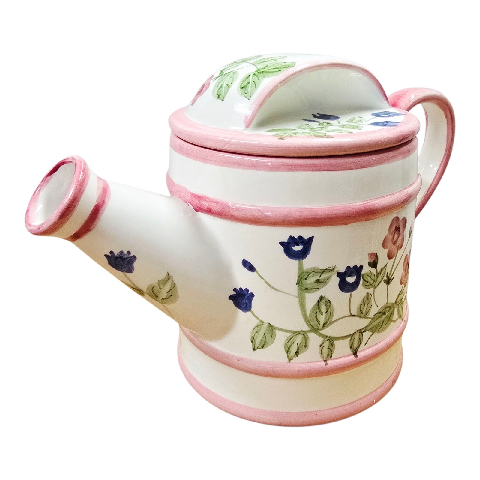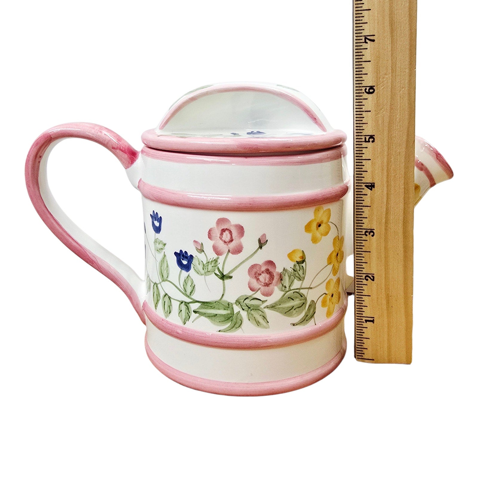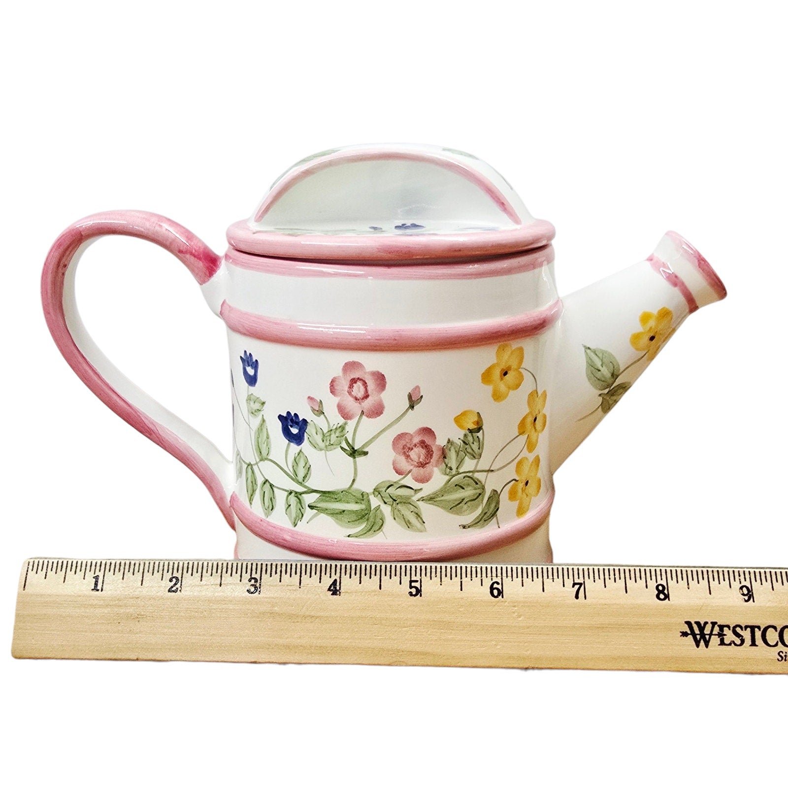 Vtg Lillian Vernon Floral Watering Can Teapot Pink Trim Ceramic Hand Painted Lid
