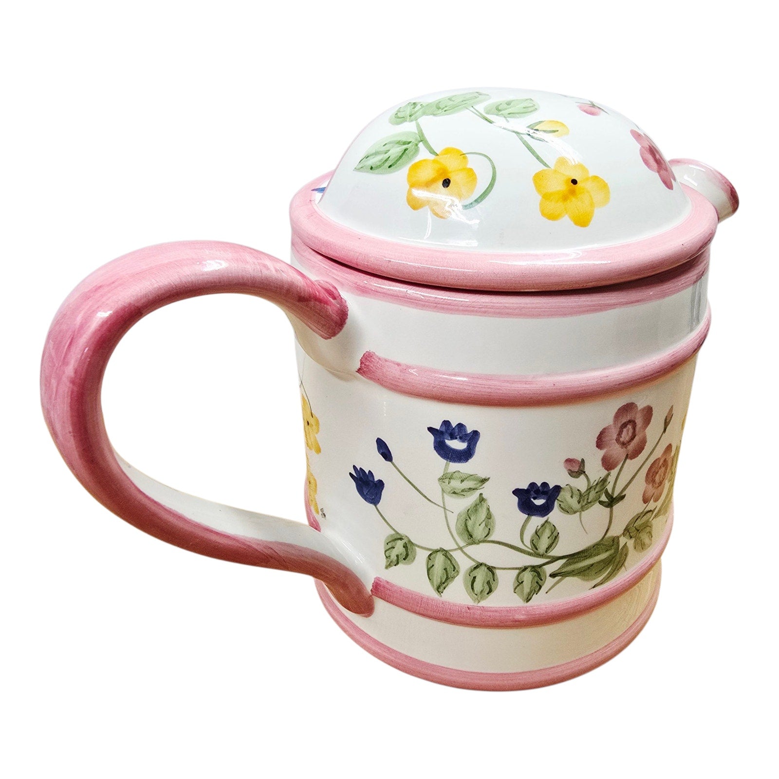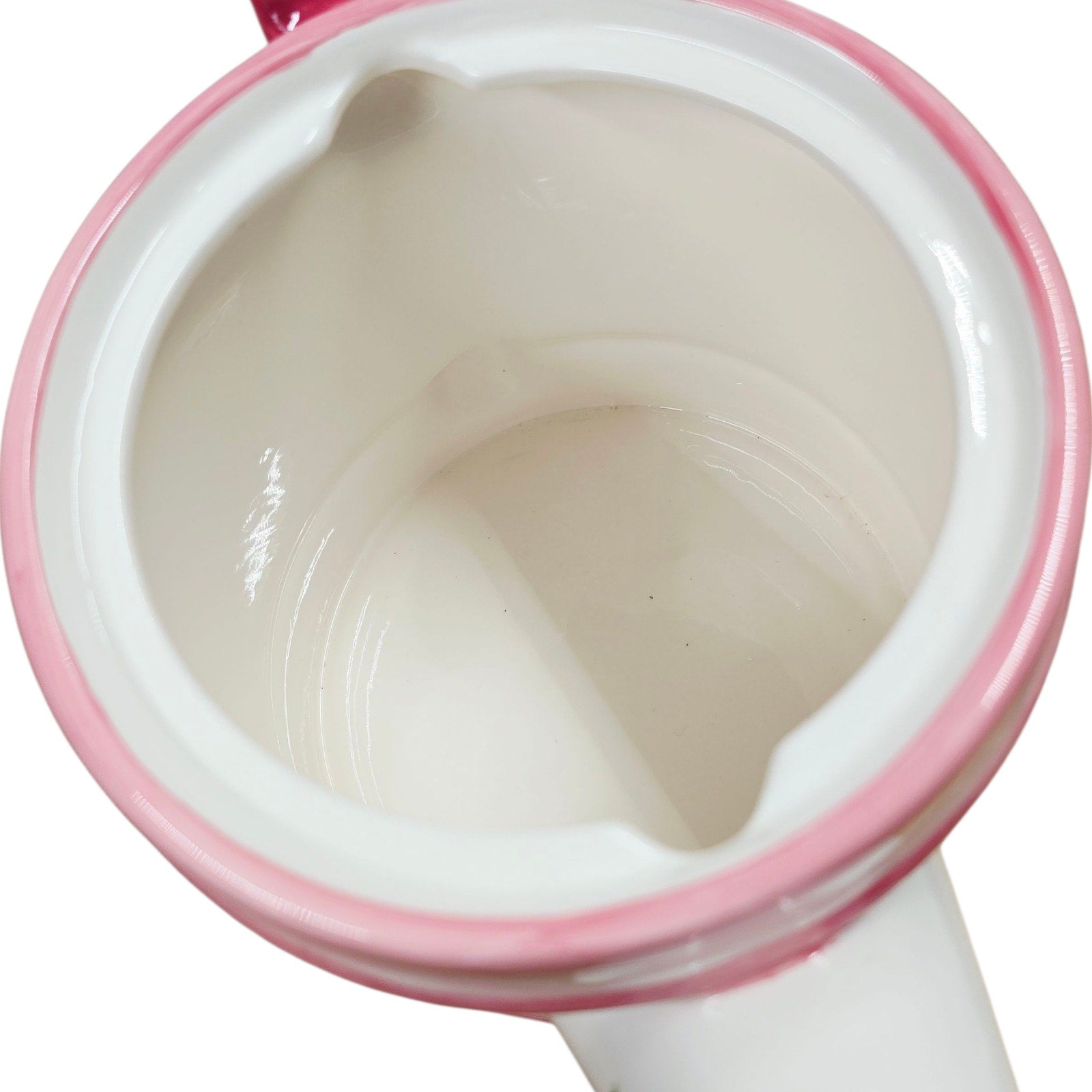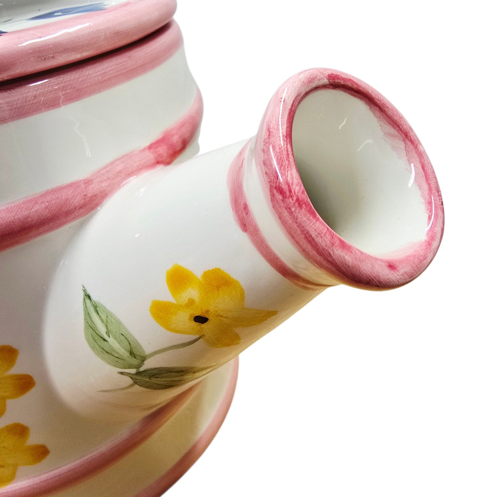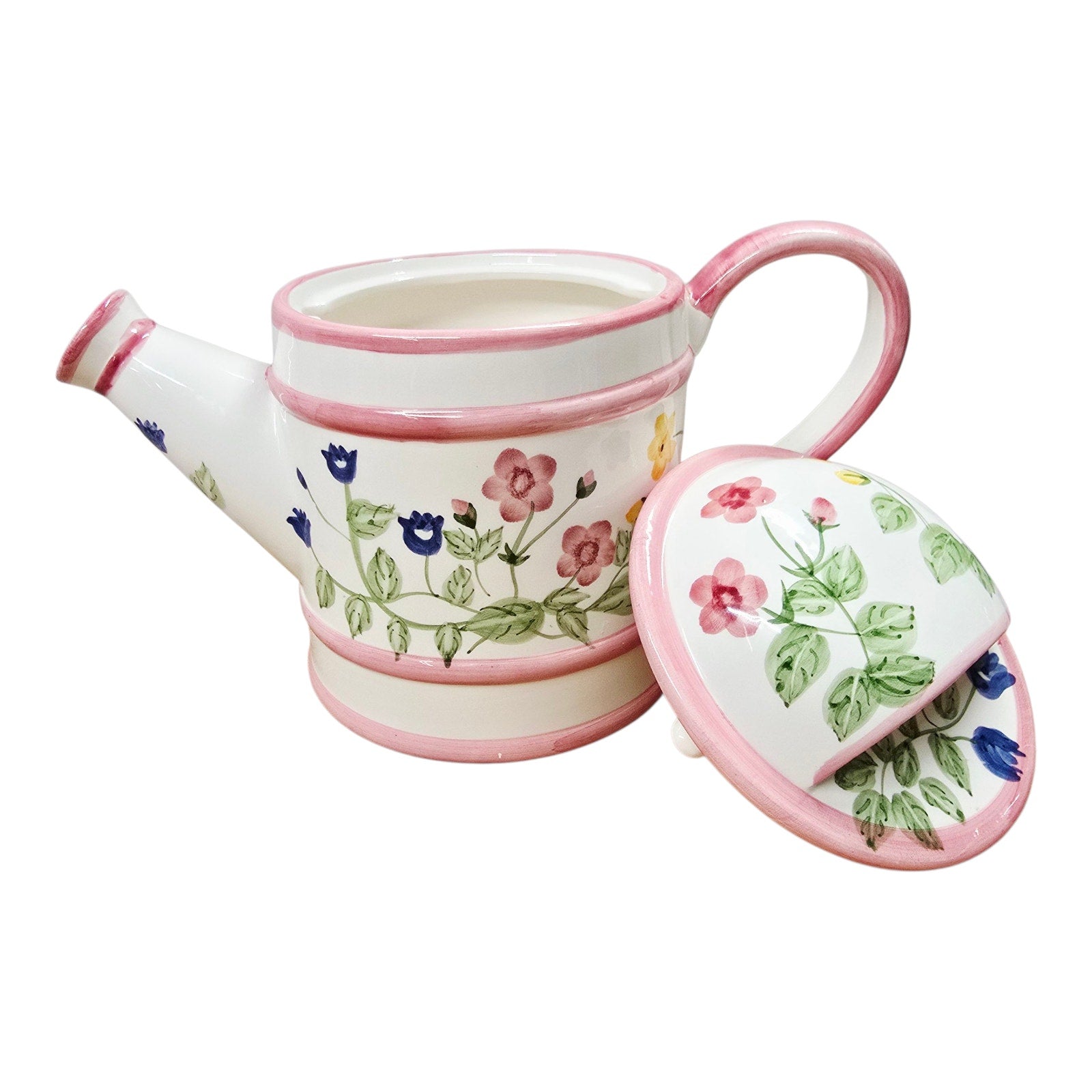 Vtg Lillian Vernon Floral Watering Can Teapot Pink Trim Ceramic Hand Painted Lid
