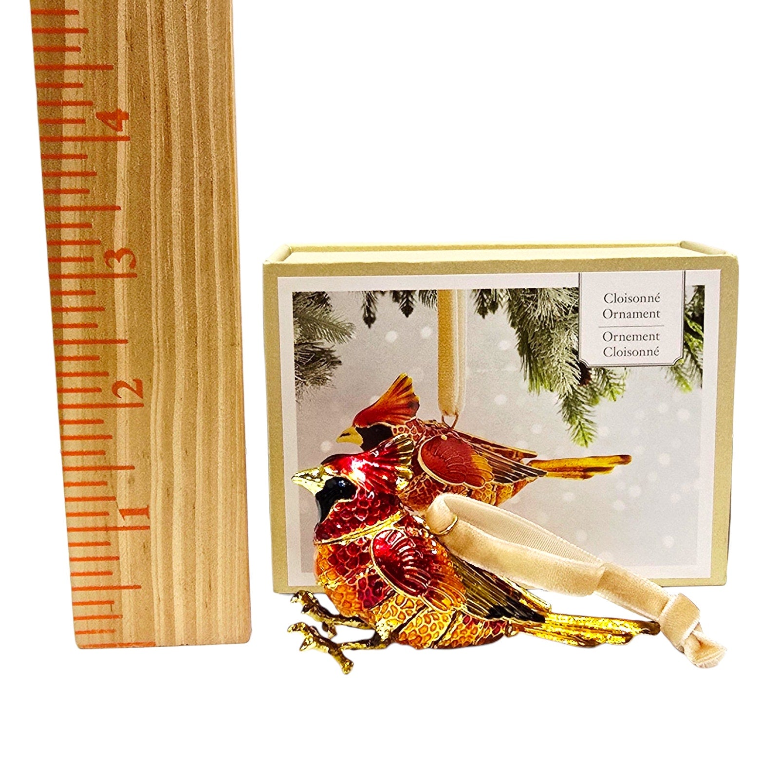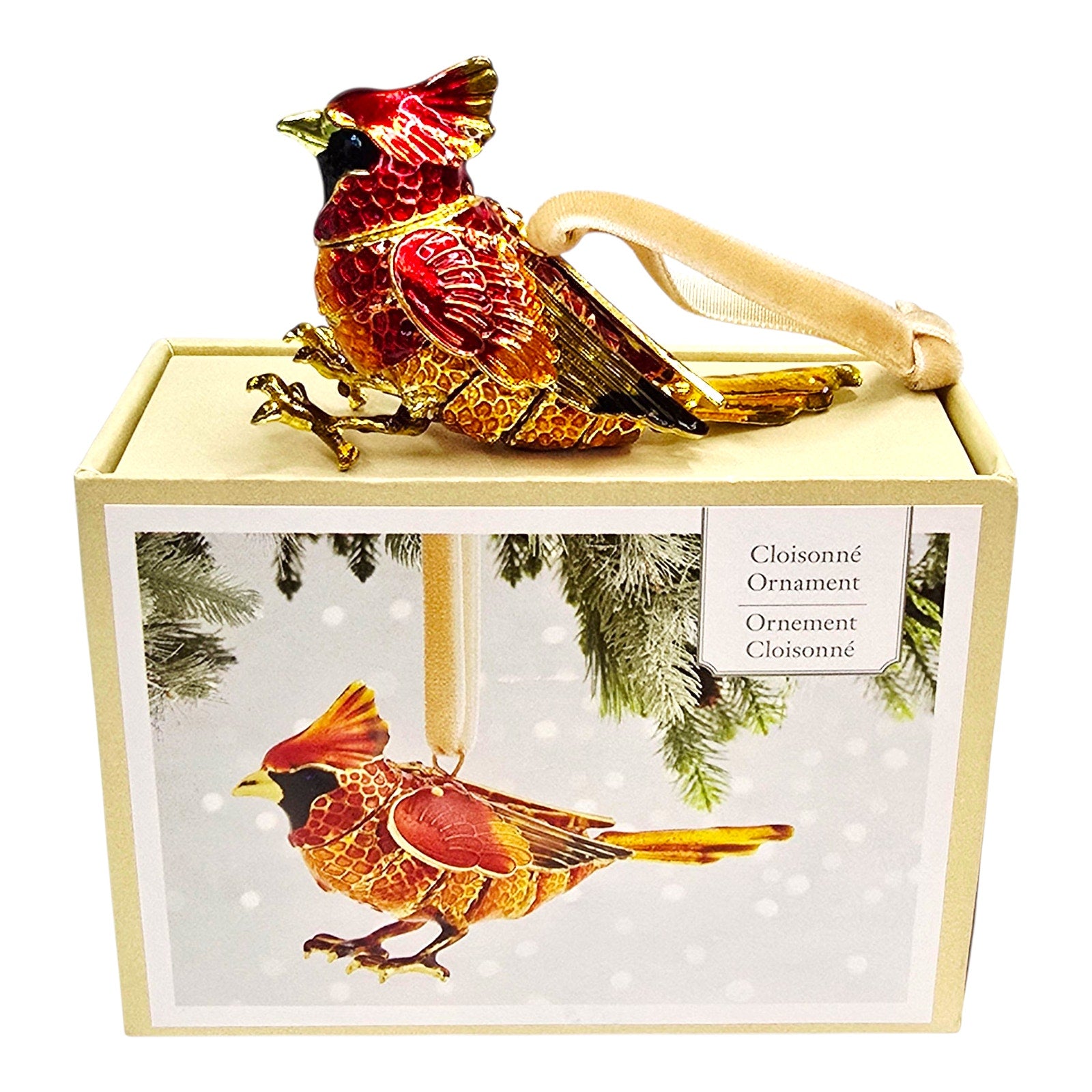 Vtg Pier 1 Cloisonné Cardinal Bird Ornament Red Gold Enamel Holiday Boxed