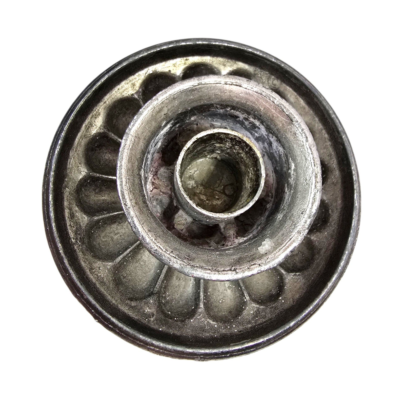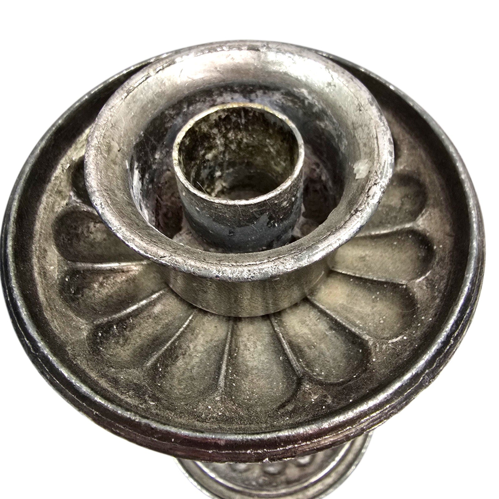 White patina / residue (oxidation) visible inside the candle cup area.