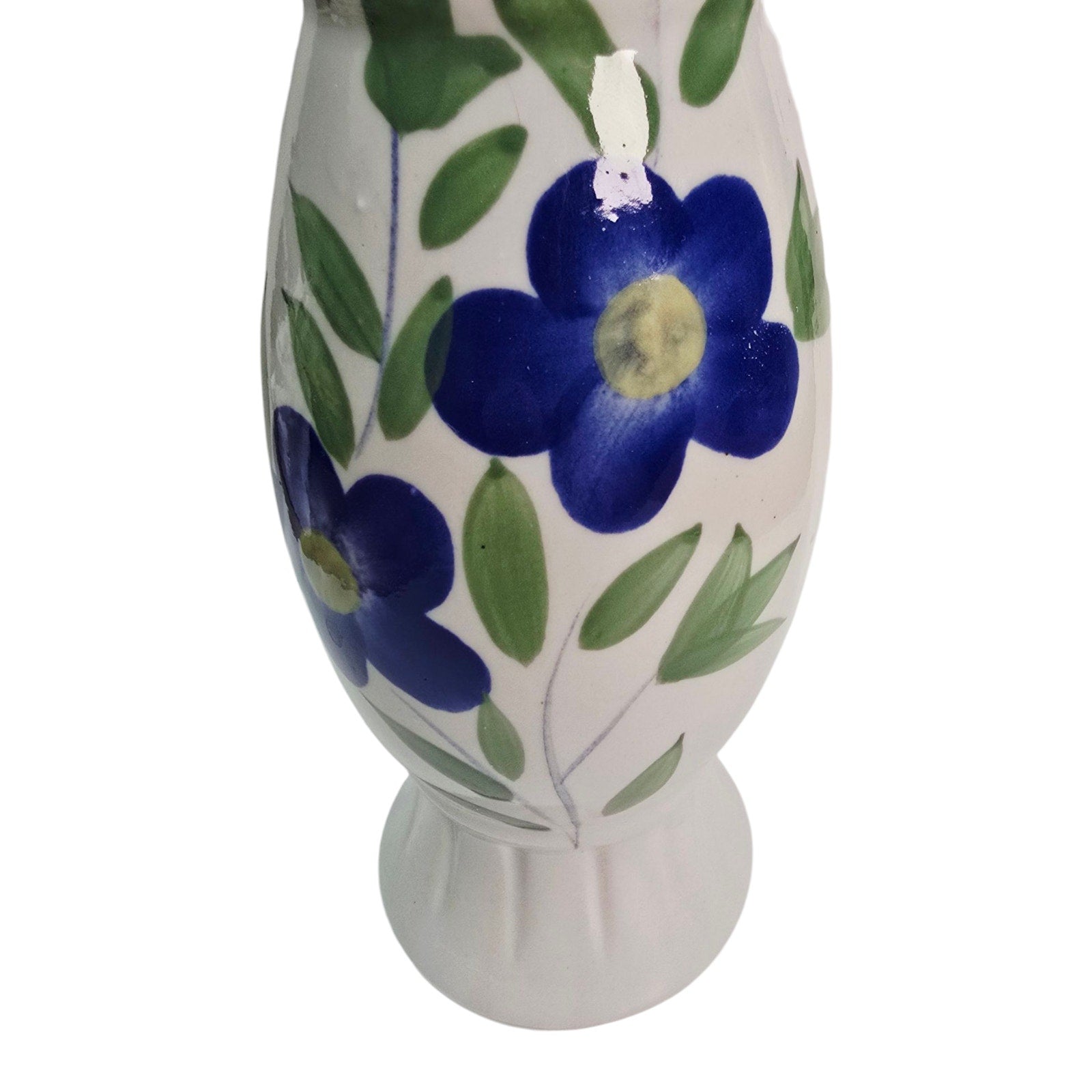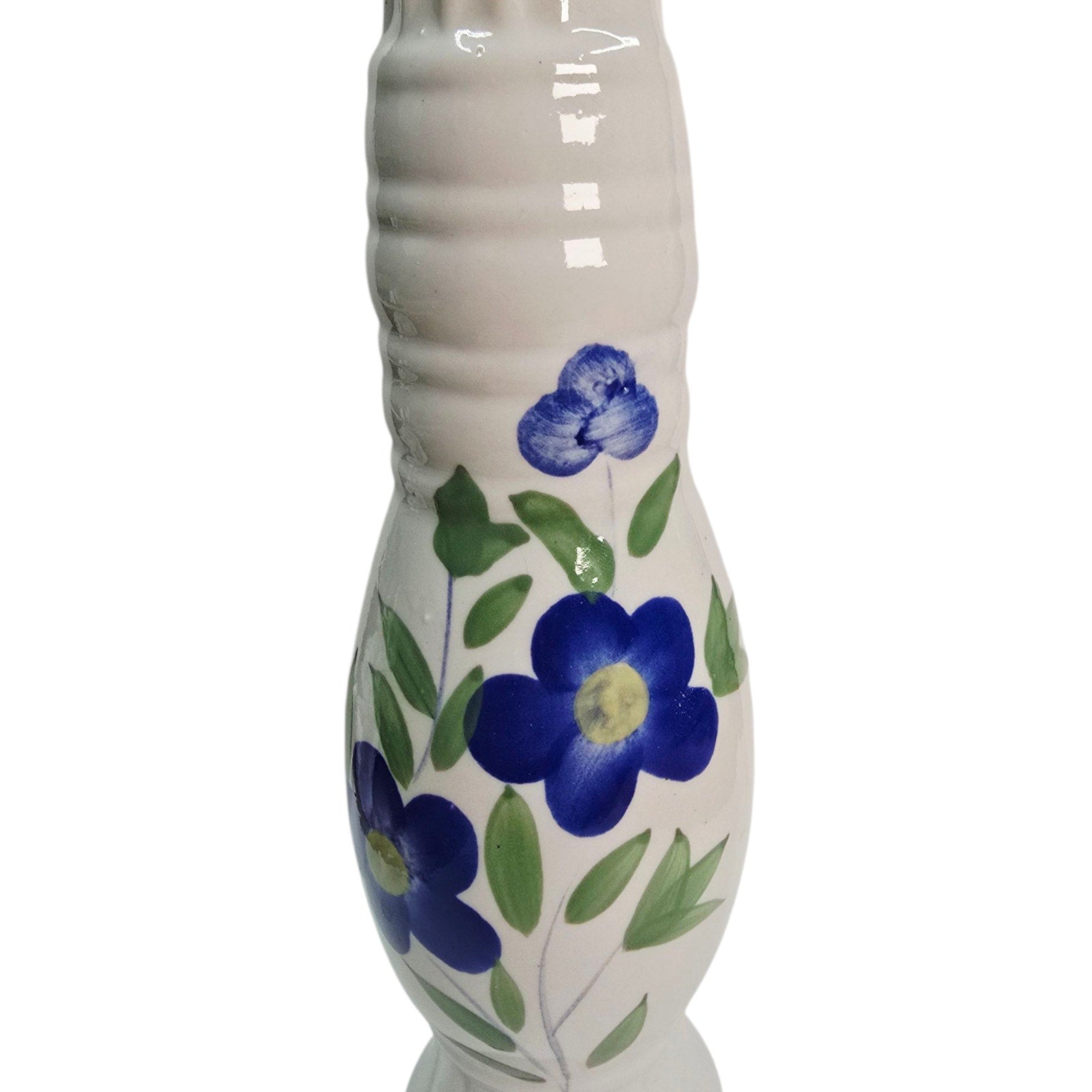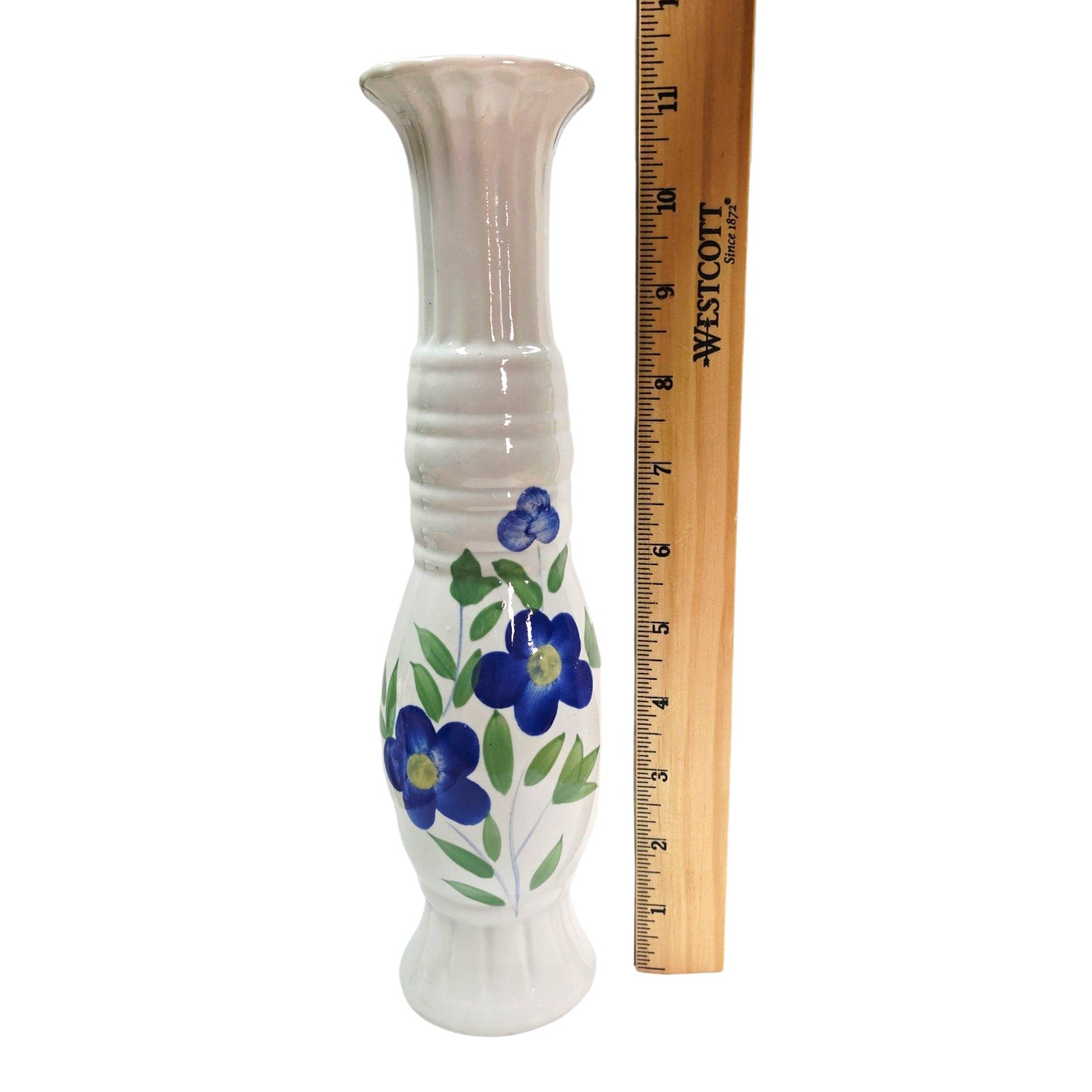Vtg Stoneware Blue & Green Floral Vase Grecian Tall Vase 11"