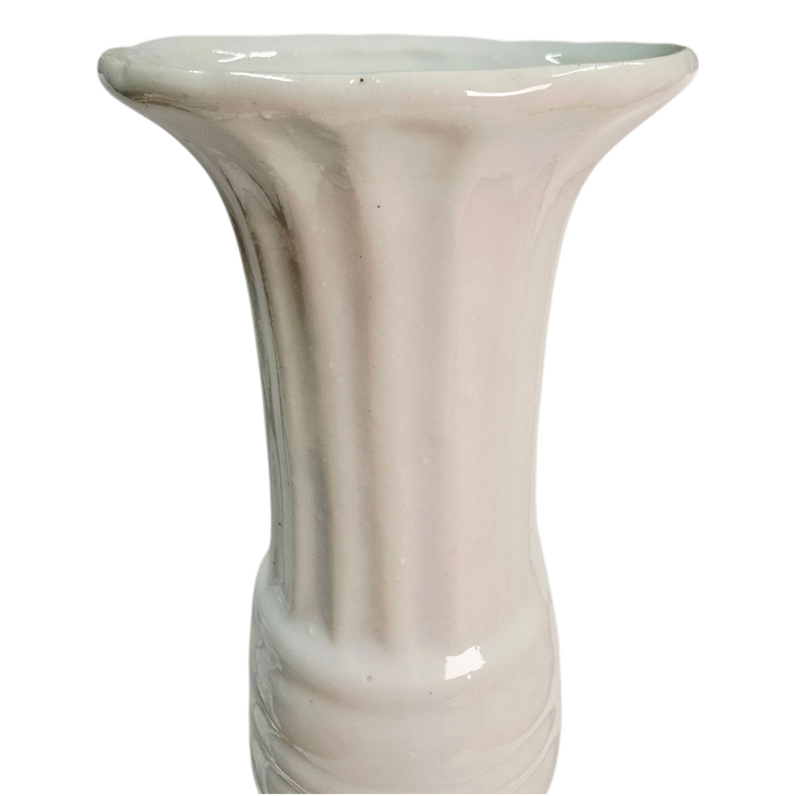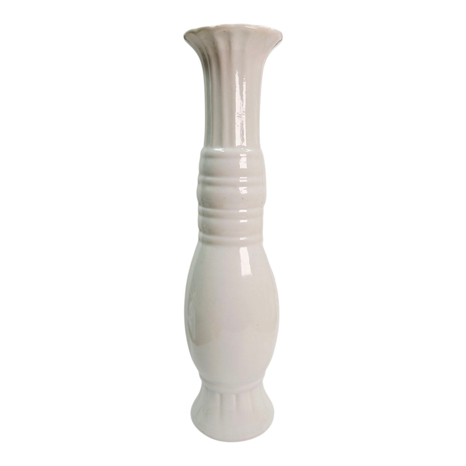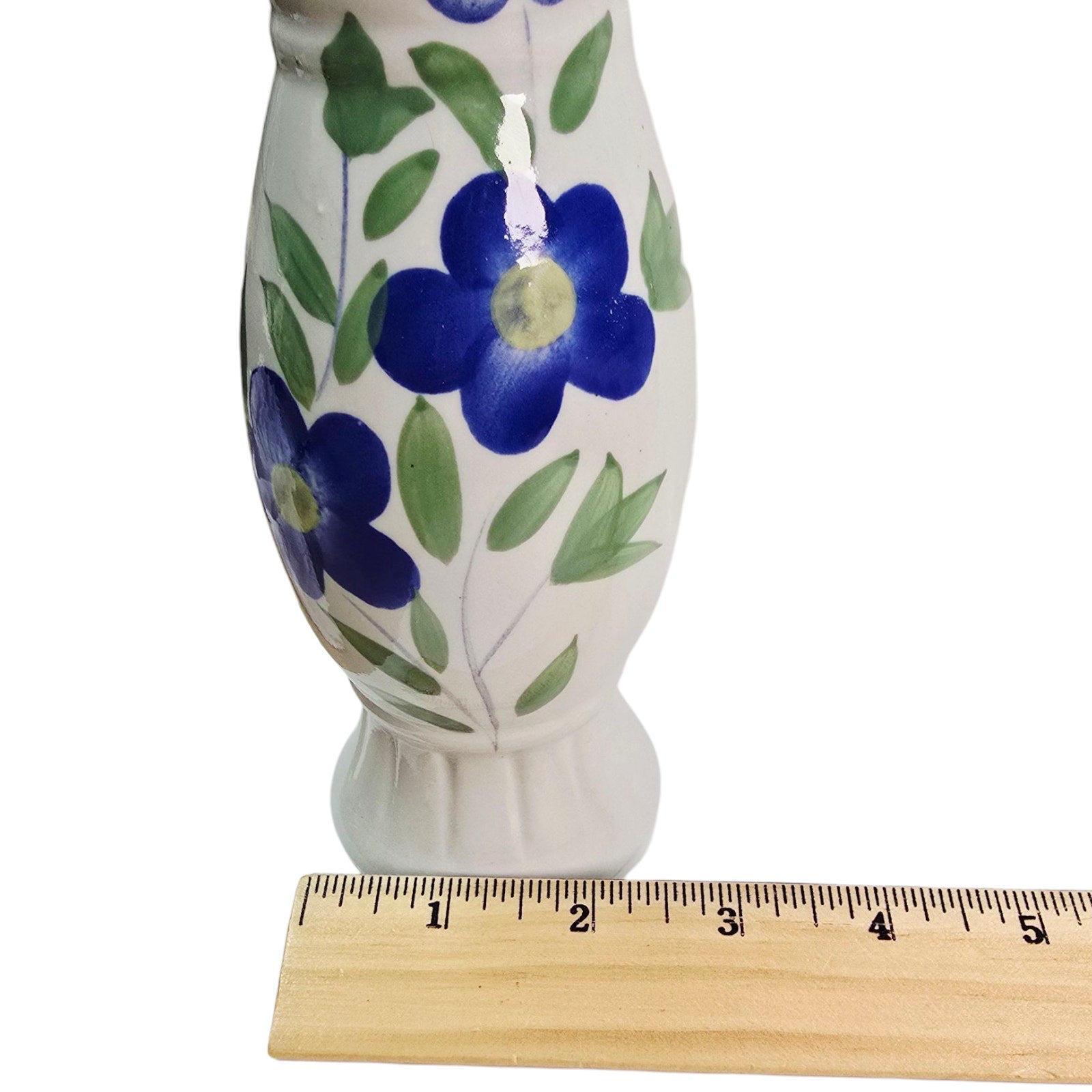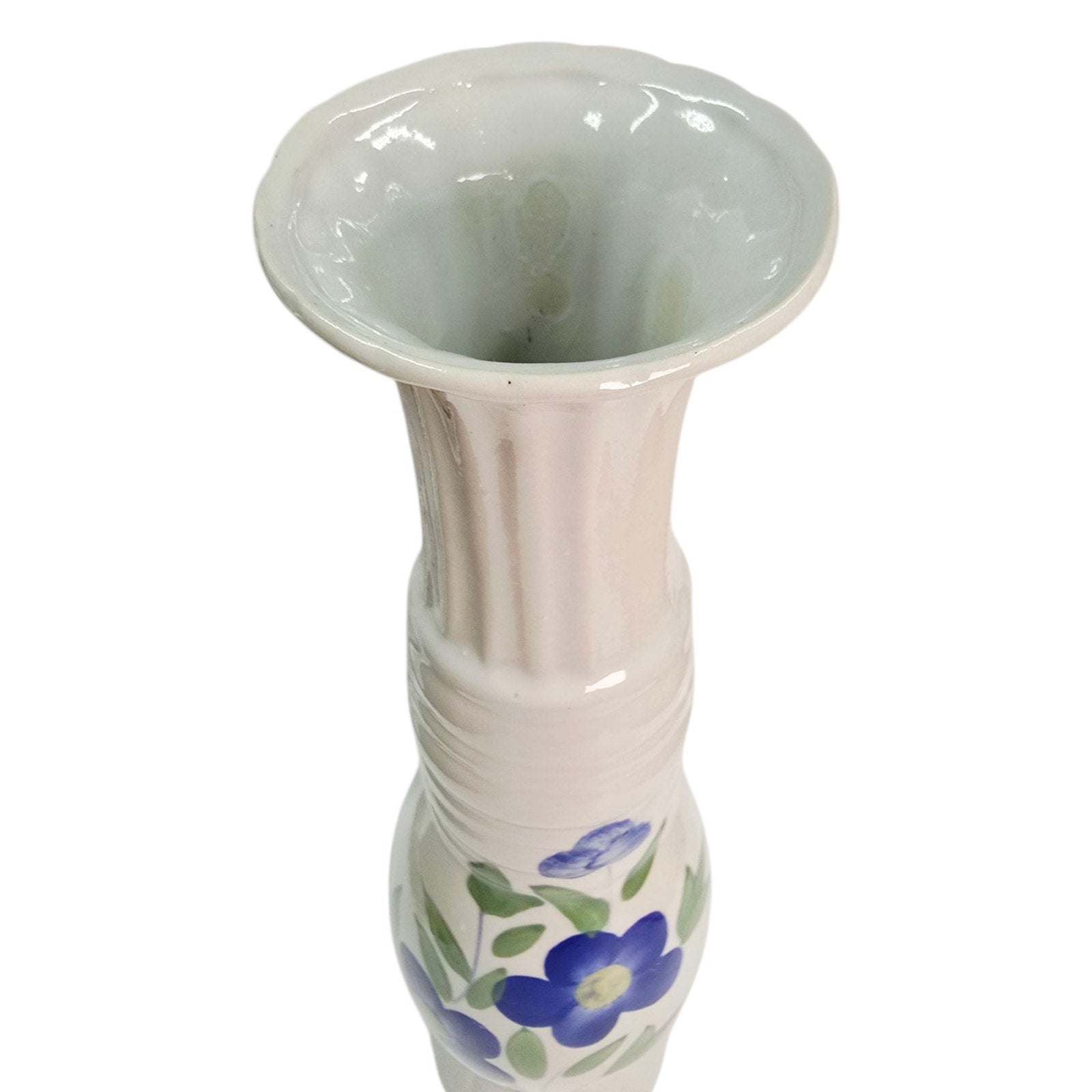 Vtg Stoneware Blue & Green Floral Vase Grecian Tall Vase 11"