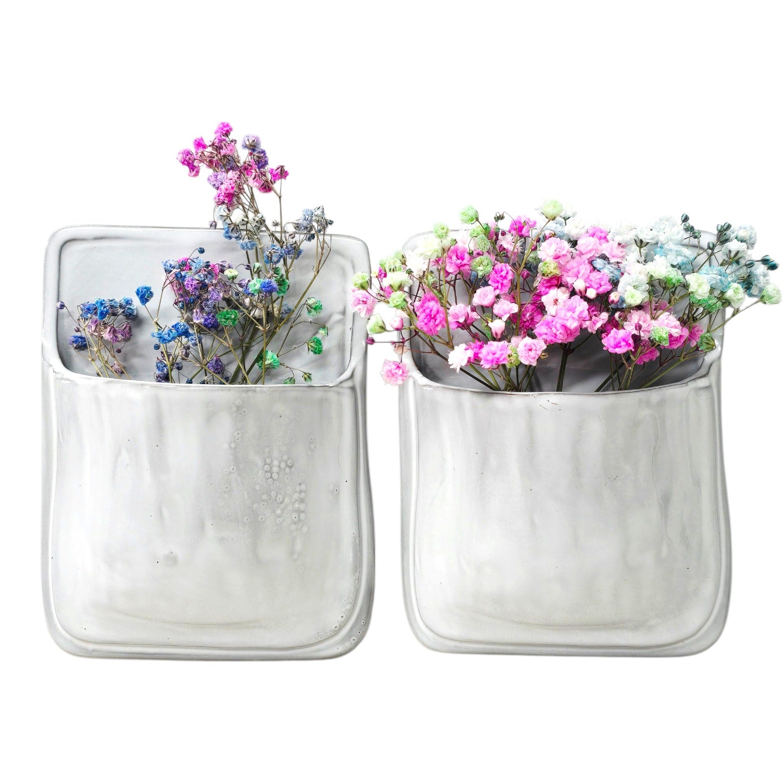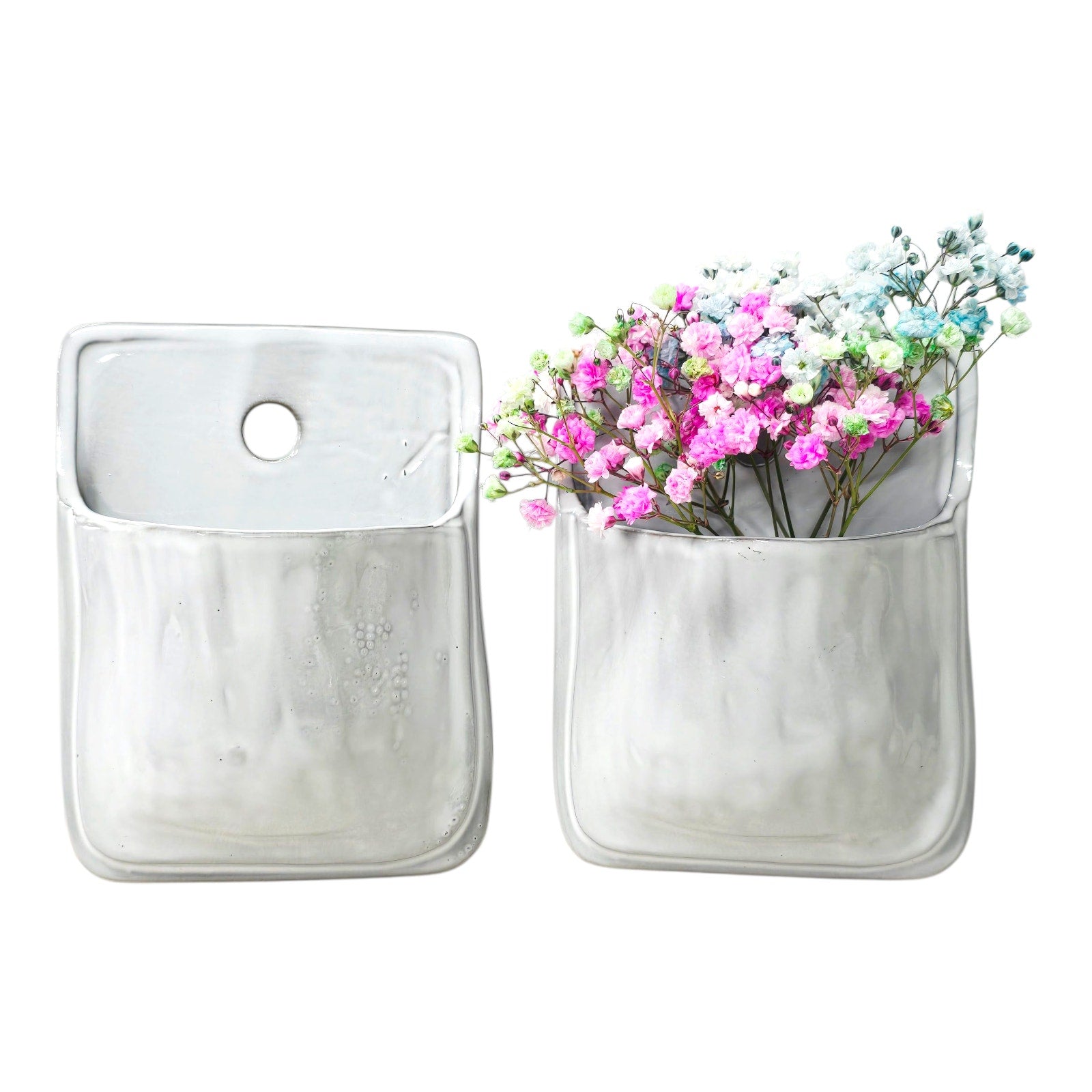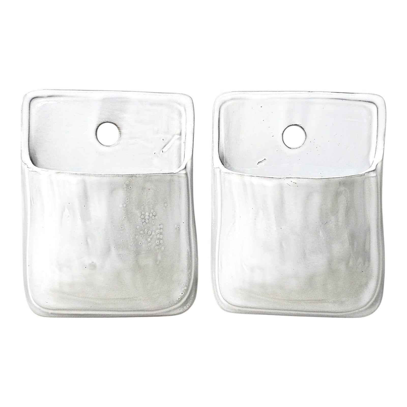 White Terracotta Pottery Wall Pockets Set of 2 Distressed White Glazed Farmhouse