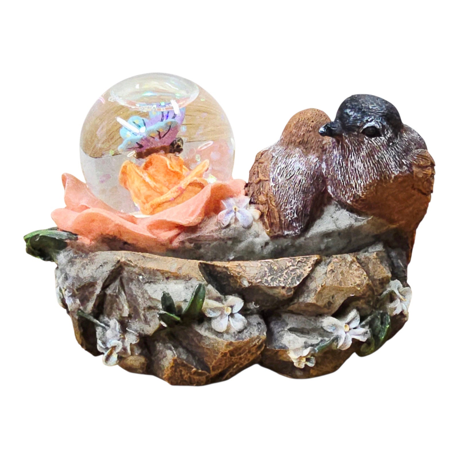 Young’s Inc Resin Bird Rose Figurine Mini Snow Globe Fairy Floral Home Decor